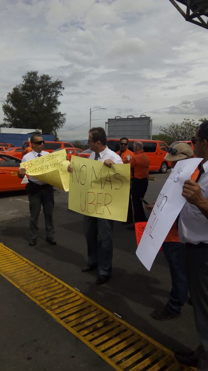 “Soberanía, respeto ¿quién manda en Costa Rica”. “No más Uber”. “La Ley 7.600 con los Uber dónde queda?”, “Estamos cansados”, fueron parte de los mensajes en pancartas que los taxistas mostraron para confirmar su descontento absoluto contra Uber y toda plataforma digital que sirva de intermediaria para el transporte de personas.