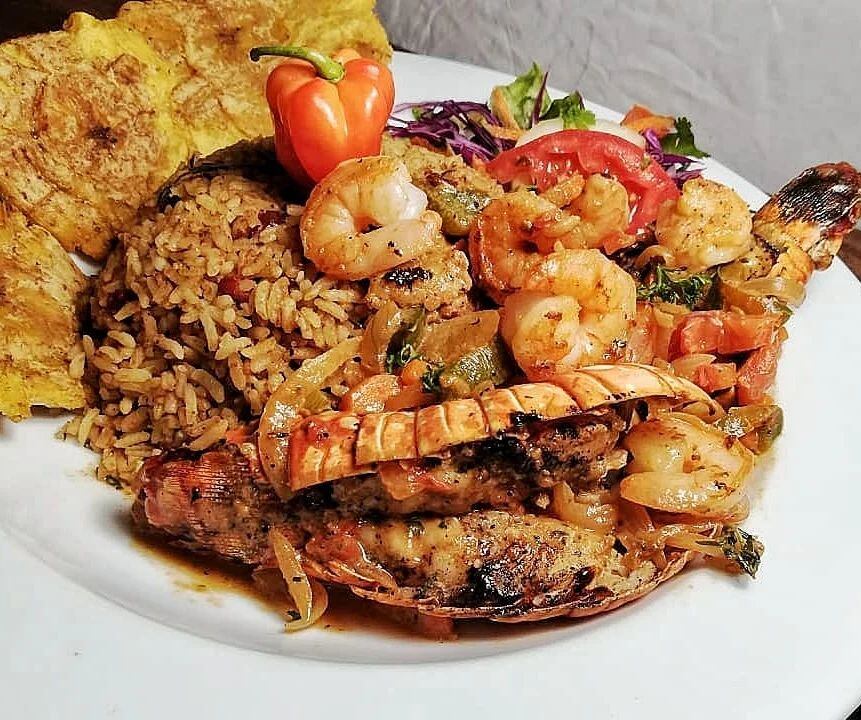El menú incluye Rice and Beans, que es una de las especialidades, diferentes tipos de pescado, platillos con pollo, pasta, sopas, cocofrijo, entre otras delicias.