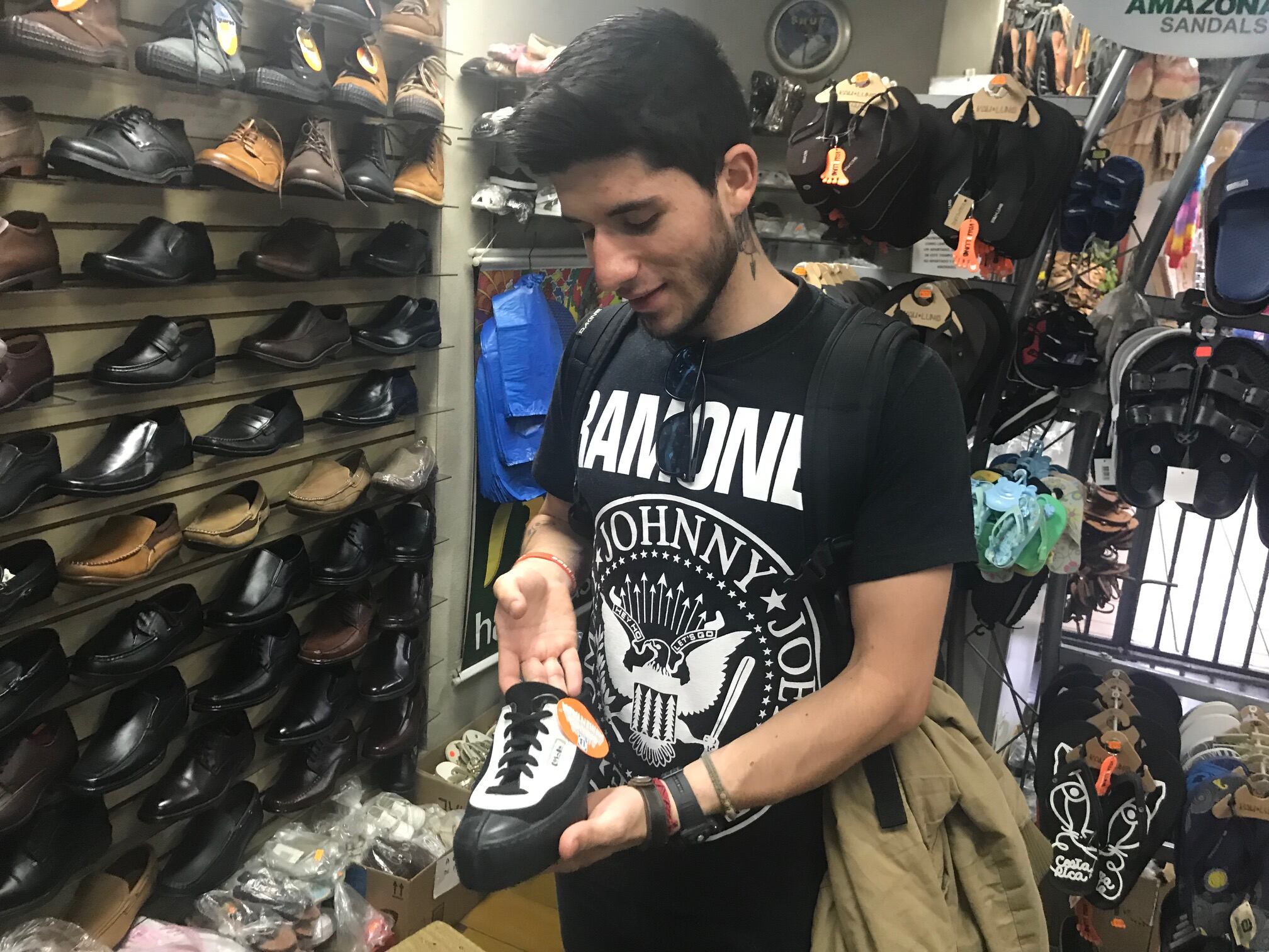 Curiosamente un joven de 21 años, Johantan Sanabria, entró a la tienda en el momento de la entrevista y le puso atención a la tenis Bilsa. De inmediato se metió en la conversación.