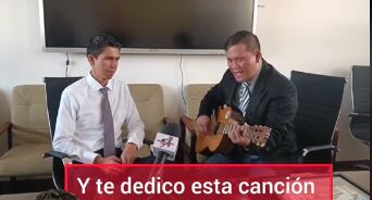 Él se reunió con el jerarca del Ministerio de Obras Públicas y Transportes (MOPT) para hacerle una entrevista y aprovechó para cantar la canción que tomó a Amador completamente desprevenido.