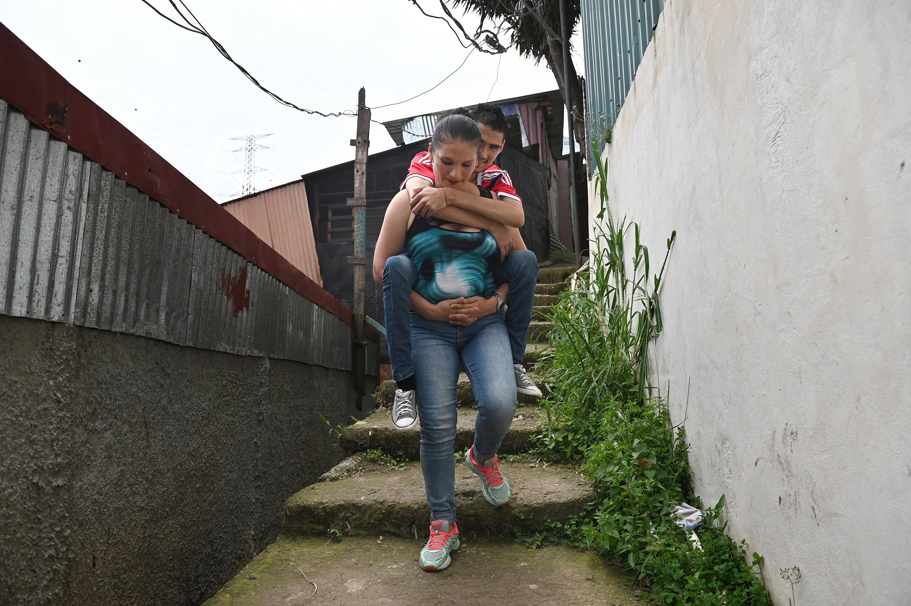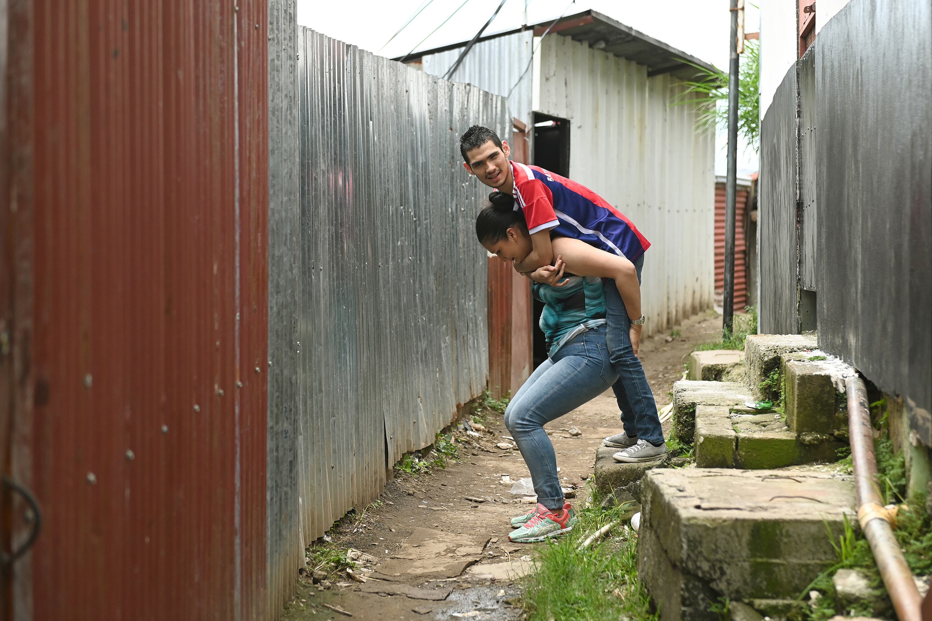 “Para salir de mi casa hacia la calle principal de La Carpio tengo que pasar por un callejón que tiene 100 gradas... Mi hijo tiene una silla de ruedas pero no la puedo pasar por ahí, entonces siempre una familia que vive antes de llegar a las gradas me hace el favor de cuidármela durante la noche”, agregó.