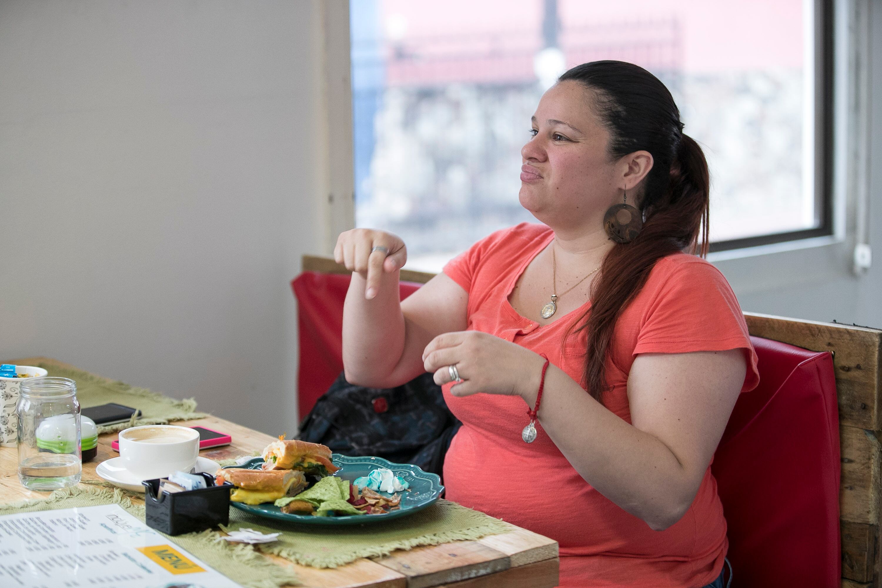 "Estamos felices de tener un lugar que nos tomen en cuenta y poder disfrutar de un buen café y comida", explicaron Melina Chaves y su amigo Jonathan Pérez, otros dos clientes sordos que se dieron la vuelta por la cafetería.