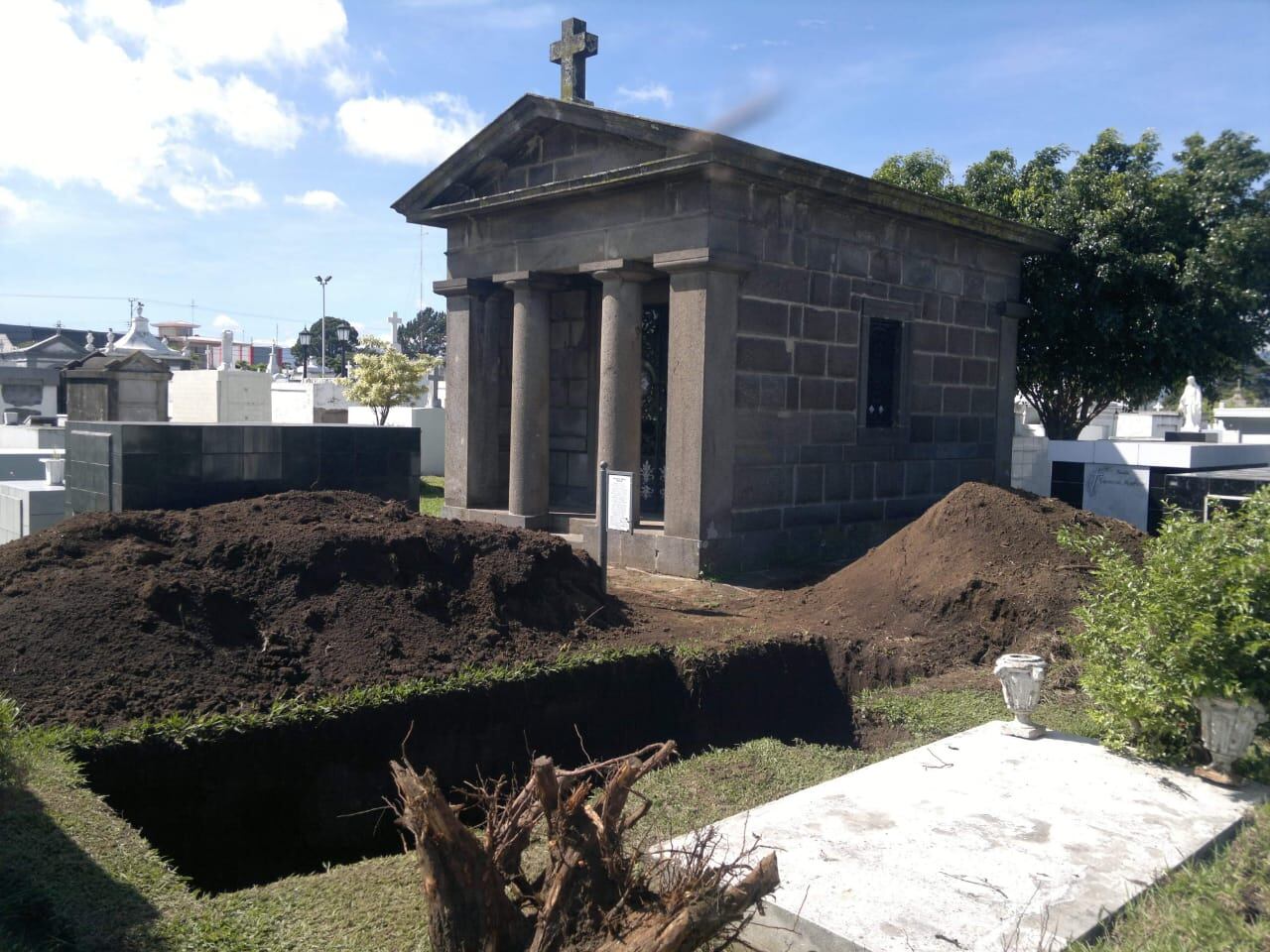 Otra experiencia que recuerda es que una vez, mientras hacía unos trabajos frente a la bóveda de la novia y tomó una foto para enviársela a la persona que le hizo el encargo todo parecía normal, no se percató de nada raro; pero luego, cuando vio con detenimiento la foto, notó que había como una columna de humo saliendo de la tumba de piedra.