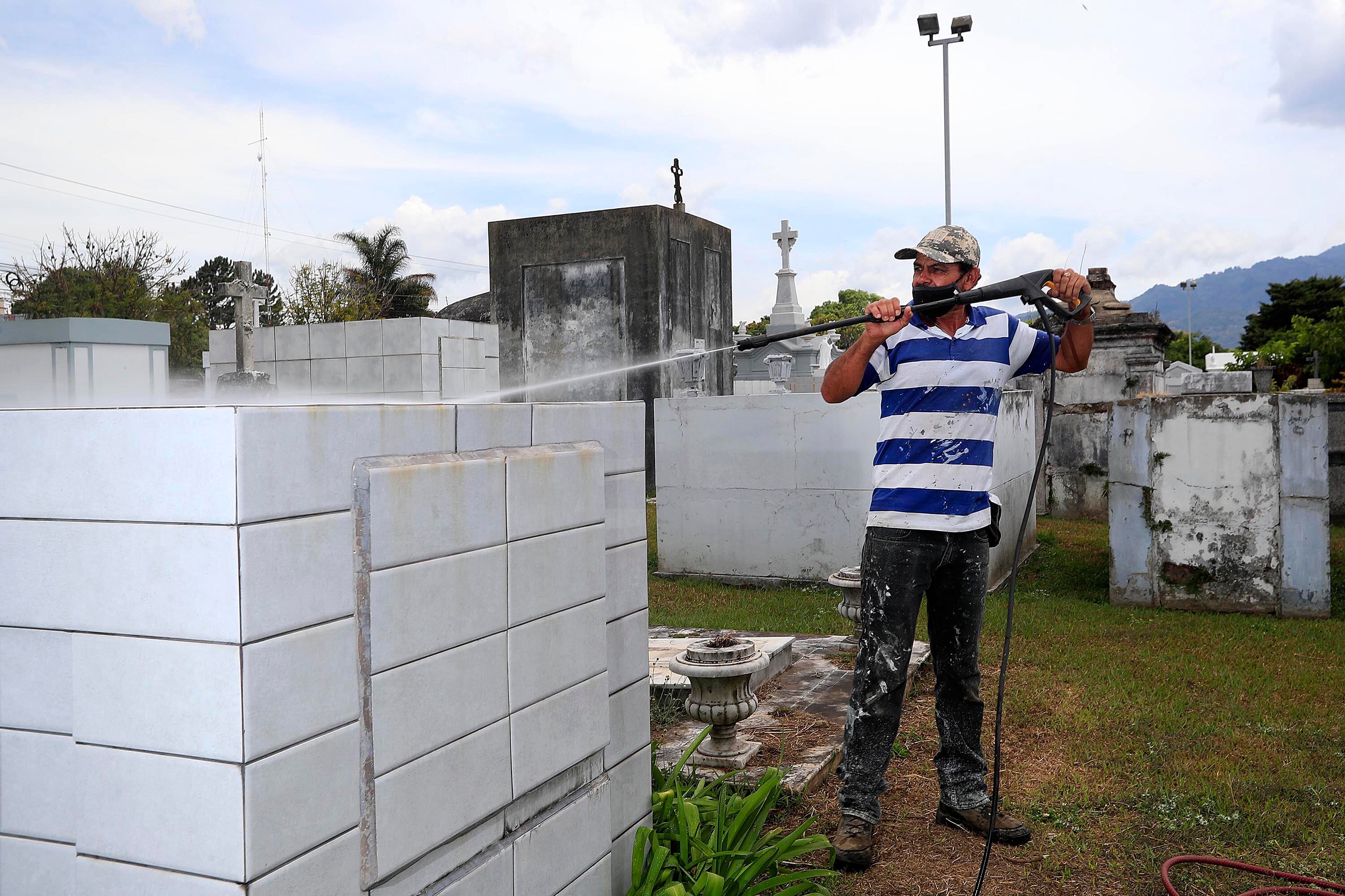 Álvaro Castillo trabaja desde hace 30 años de forma independiente en el Cementerio General de San José. Llegó un día buscando cómo ganar platica para alimentar a su familia y empezó lavando bóvedas; ahora tiene contratos fijos de mantenimiento de 280 tumbas al mes.