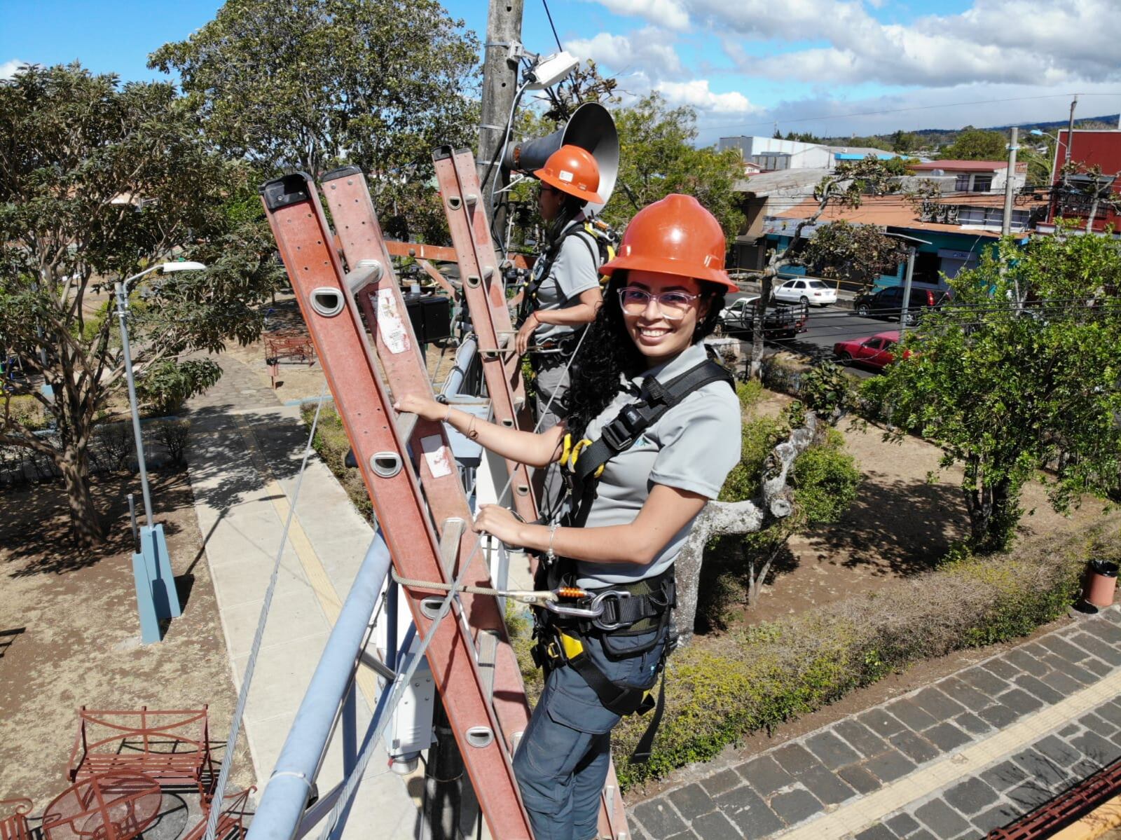 Trisha Henry es vecina de Barva de Heredia, tiene 29 años y cinco años de trabajar en la ESPH; desde hace dos se desempeña en las alturas.