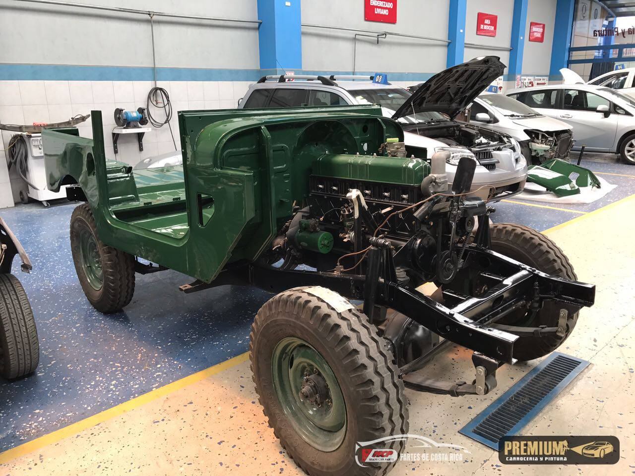 Con el chasis alineado y pintado lo armaron y colocaron el motor con todos sus componentes. Luego siguió la carrocería, puertas, la tapa del motor, parabrisas, la lona, tanque de combustible, y cromados.