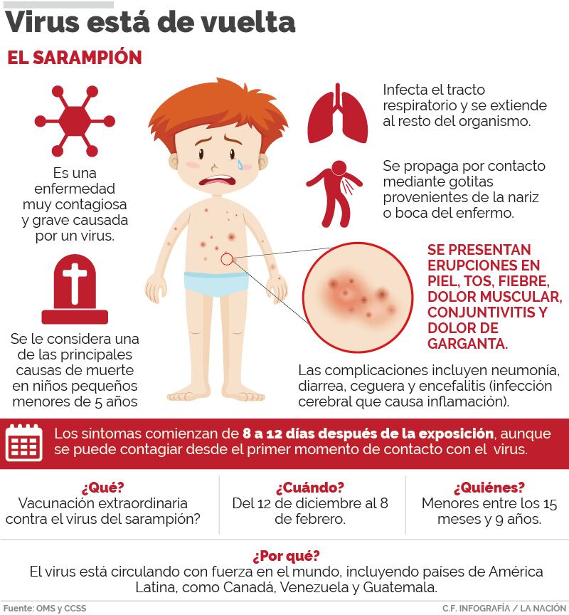 Según informó el doctor Roberto Cervantes Barrantes, gerente médico de la Caja, la decisión fue tompada por la Comisión Nacional de Vacunas, porque el virus del sarampión está circulando en otros países del mundo, entre ellos Venezuela, Brasil, Colombia, Argentina, Canadá, Ecuador, Estados Unidos, México y Guatemala donde se suman alrededor de 7 mil casos y cerca de 72 muertes ( 10 en Brasil y 62 en Venezuela).