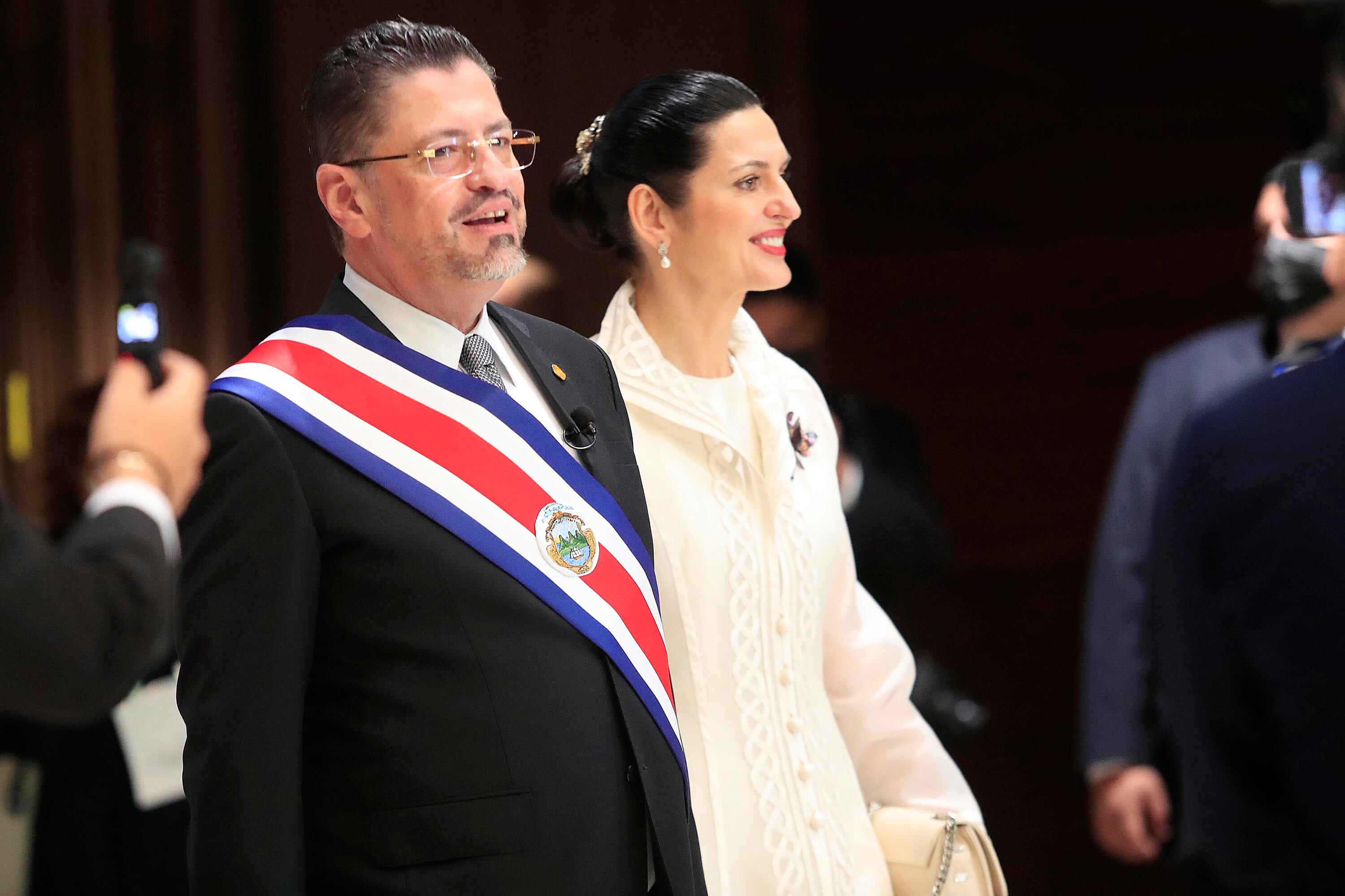 El ahora expresidente Carlos Alvarado y su esposa, Claudia Dobles, usaron la mascarilla en todo momento y se vio haciendo lo mismo a invitados extranjeros como Felipe VI, rey de España, o Iván Duque, presidente de Colombia.