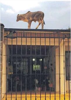 Una vaca zarcereña se convirtió en la sensación de las redes sociales al ingeniárselas para subirse al techo de la casa del dueño.