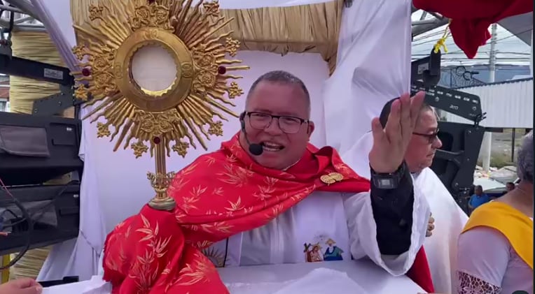 El padre Sergio Valverde se dejó llevar por la emoción que sintió este Domingo de Resurreción, que culmina la Semana Santa, y armó un tremendo alboroto en los barrio del sur de la capital.