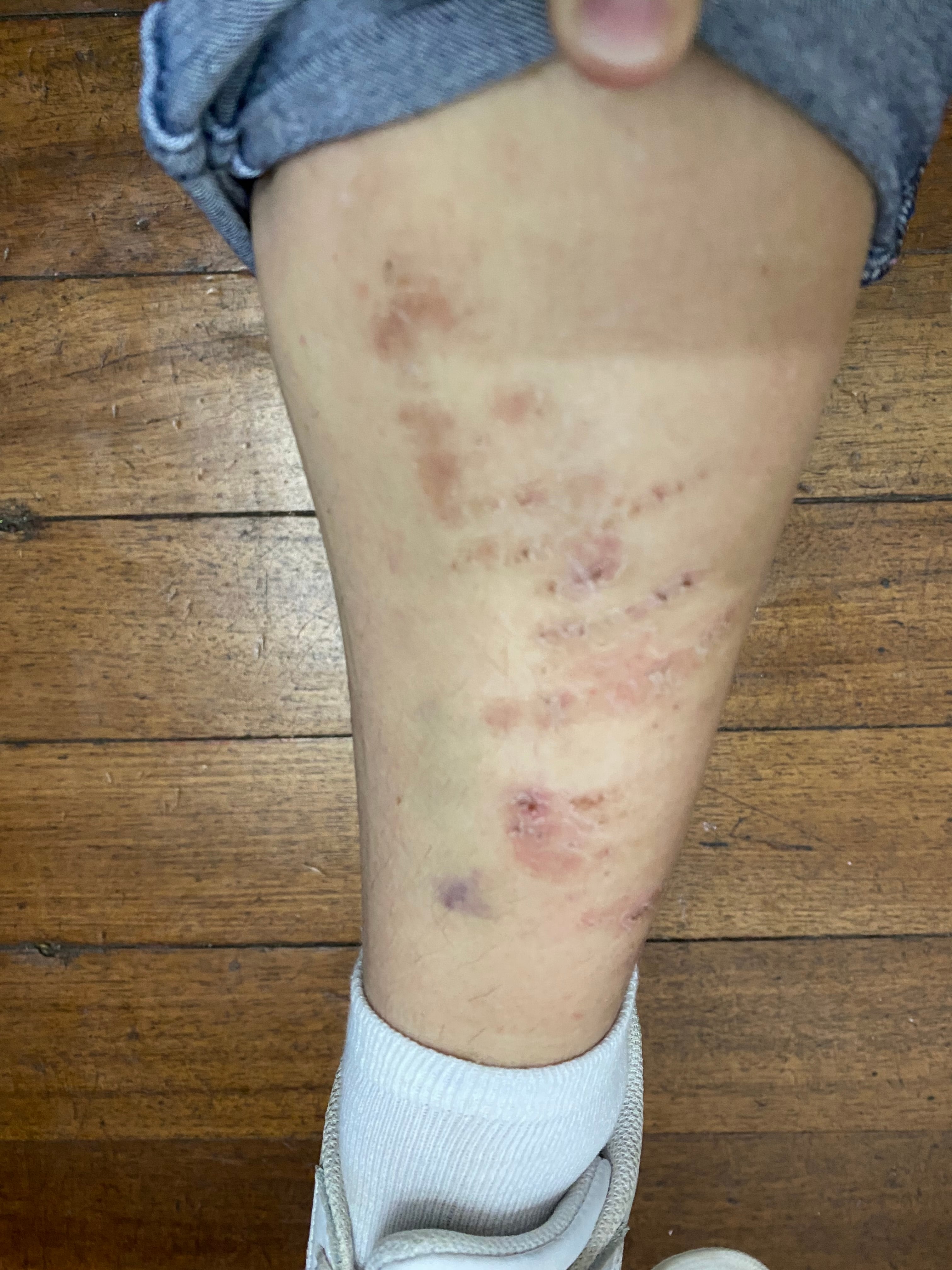 Eduardo sufrió una exposición de hueso en una pierna y el niño se golpeó la frente y le quedó una cicatriz.