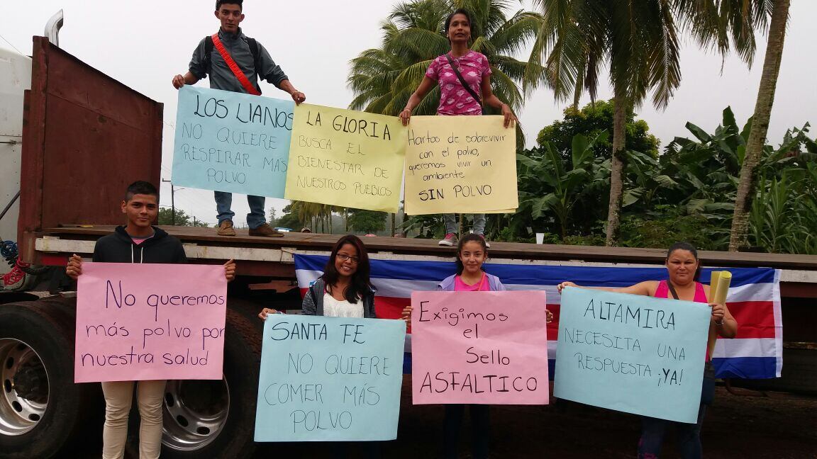 Vecinos de Agua Zarcas de San Carlos, se tiraron a la calle a protestar en contra del polvazal que les genera a diario una calle en Santa Fe, de esta misma comunidad.