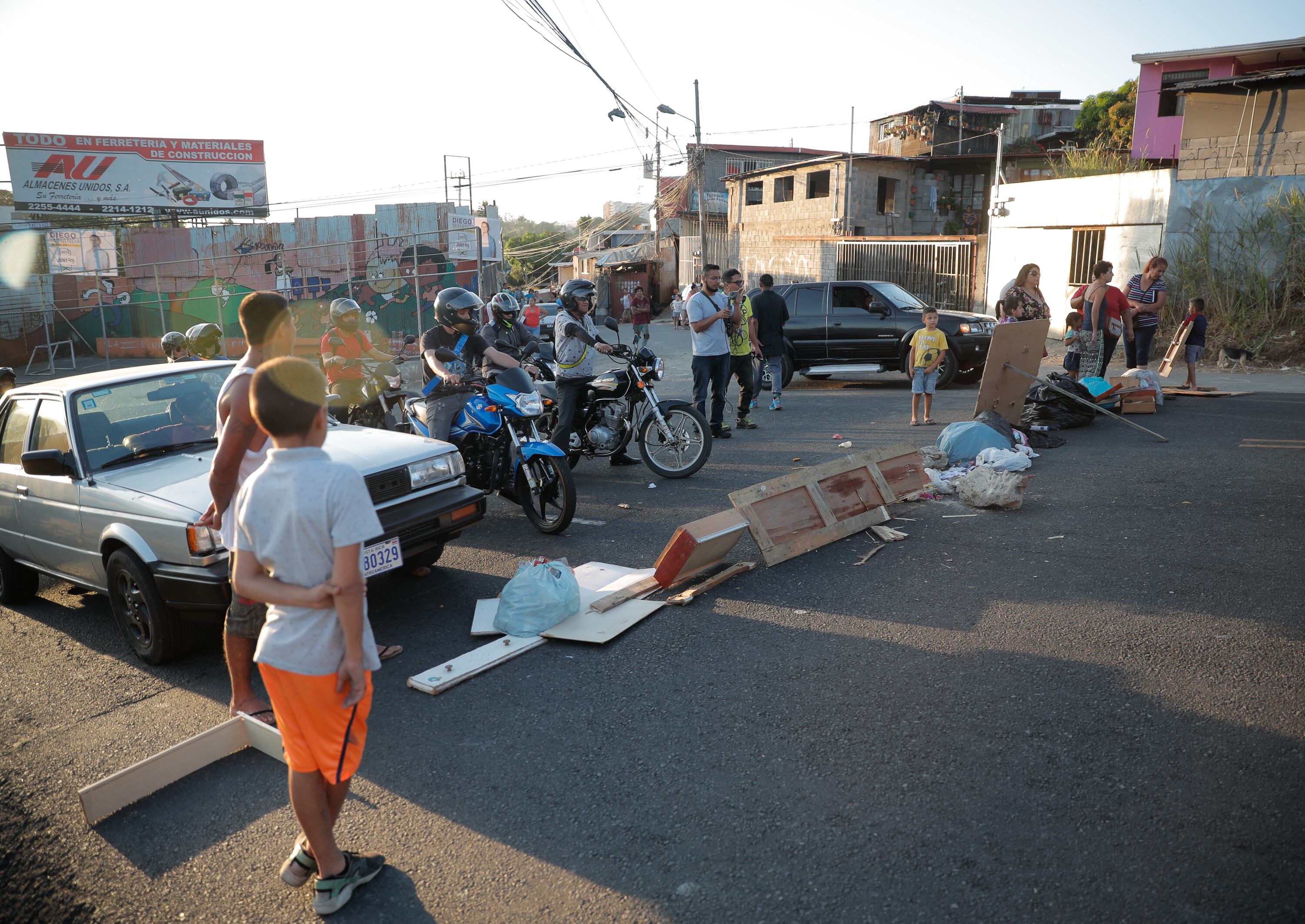 Harta de estar a secas, gente de barrio Cuba bloqueó este jueves la calle que conecta con los Hatillos para exigirle al AyA que respete los horarios de los cortes del agua.