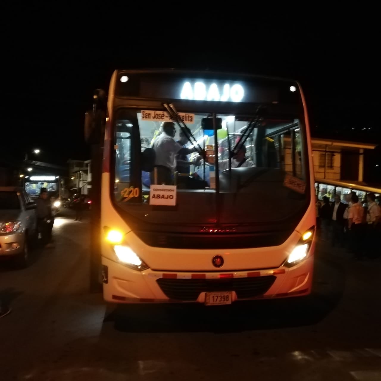 El Consejo de Transporte Público (CTP) llegó la madrugada de este viernes 22 de febrero del 2019 a la terminal de buses de Concepción Arriba y Abajo de Alajuelita y le quitó la concesión del servicio a la empresa que tenía la ruta para dársela a una nueva que metió 19 buses nuevos.