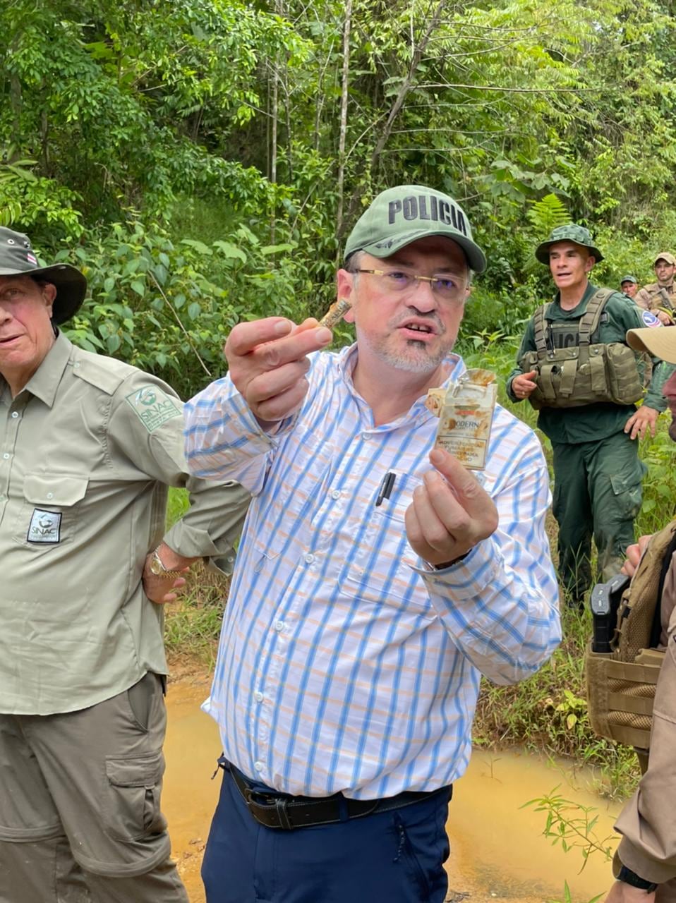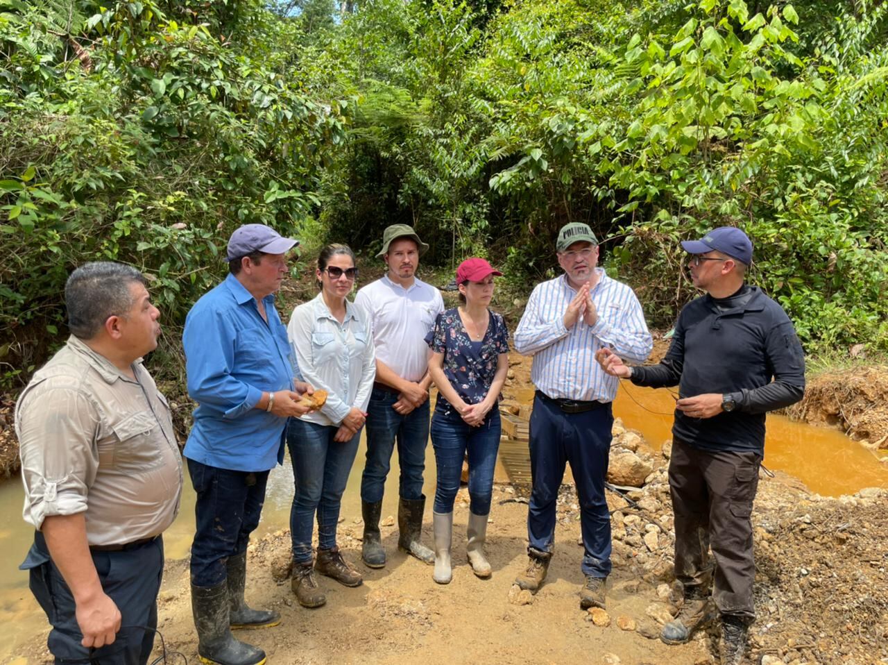 El mandatario hizo un recorrido y vecinos lo llevaron a un sitio en el que hacía pocas horas los coligalleros habían estado sacando oro, incluso recogió una caja de cigarros que demostraba que poco antes habían estado fumando en ese sitio.