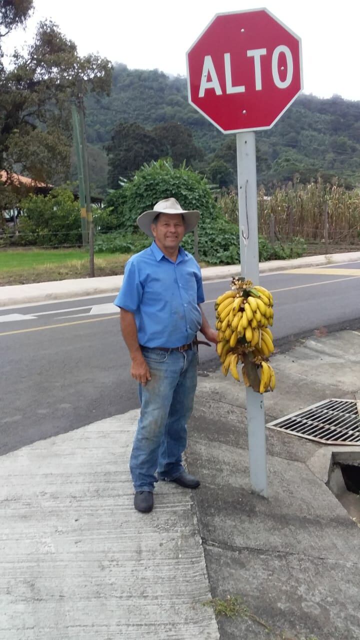“Ahorita acabo de guindar un racimo en el famoso alto (señal de tránsito que hay frente a su casa) para que la gente pase y se lo lleve. Es una herencia de mis padres. Antes se le daba a las visitas un puñito de frijoles, aguacates o lo que hubiese en la casa. Es una costumbre muy bonita”, explica don Jorge.