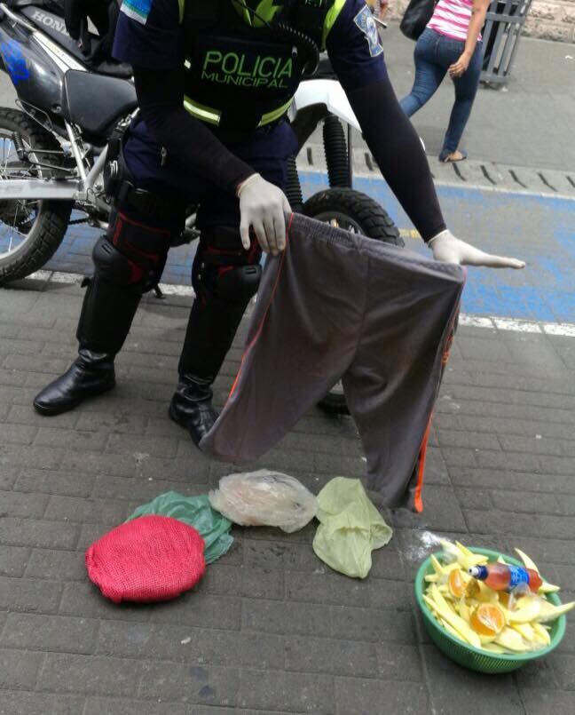 La detención ocurrió en avenida 4 con calle 10 en el centro de San José, y aunque en la foto no se aprecia muy bien, la prenda de vestir estaba insalubre, según dijo la Polícia Municipal.
