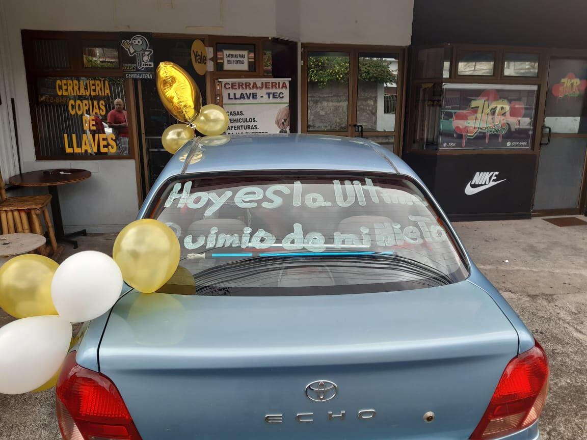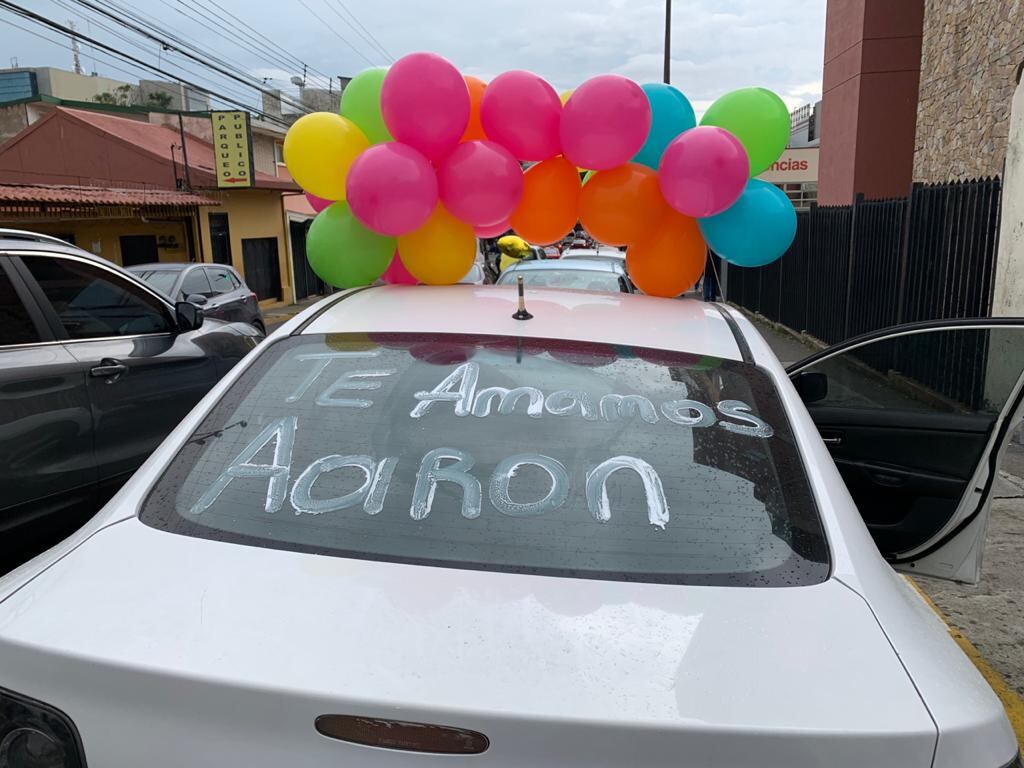 "El martes de esta semana él recibió su última sesión de quimio y precisamente porque vivimos el día a día quisimos celebrarlo. No sabemos si en el futuro tendrá que volver a recibir ese tratamiento, pero de momento este fue el último y por eso mi familia hizo una caravana para recogerlo en el hospital y llevarlo a la casa.