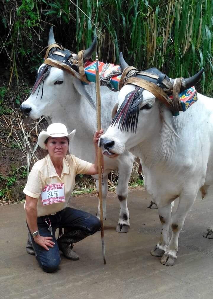 “A mi esposo también le gustaban mucho las carretas y los bueyes; él ya murió, pero en vida siempre me apoyó en lo que pudo. Hace poco más de once años, cuando hacían desfiles de boyeros, me invitaban de madrina y me vestía típico para andar subida en una carreta, pero eso no me gustaba: lo que quería era andar con mi propia yunta jalando una carreta. Se lo dije a mi esposo y entonces él me compró los bueyes y todo”.