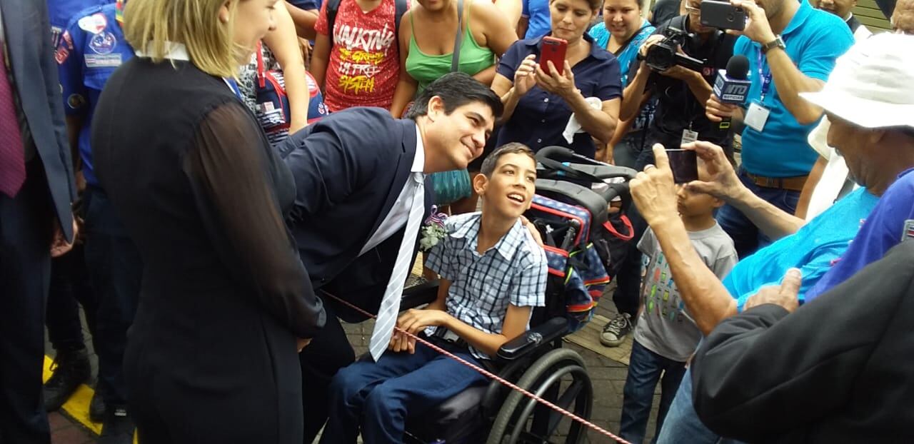 Luego, al finalizar el acto caminó los 200 metros entre el parque Juan Santamaría y el parque Central con total tranquilidad, por supuesto que resguardado por protocolo. Muchos alajuelenses le tendieron la mano, se tomaron selfies y le hicieron preguntas.
