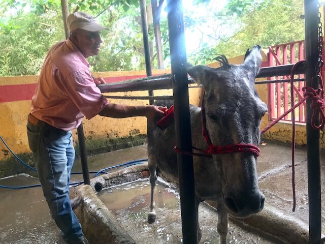 Pero antes tuvieron que ponerla con toda la pata y prepararla para la ocasión en la ganadería Portón Ecuestre, de Cariari, en Belén. A la burrita se le dio un buen baño que incluyó tratamiento con champú de caballo, y se le hizo un recorte de casco, algo así como un "paticure" pues los cascos crecen como las uñas y se deben limar.