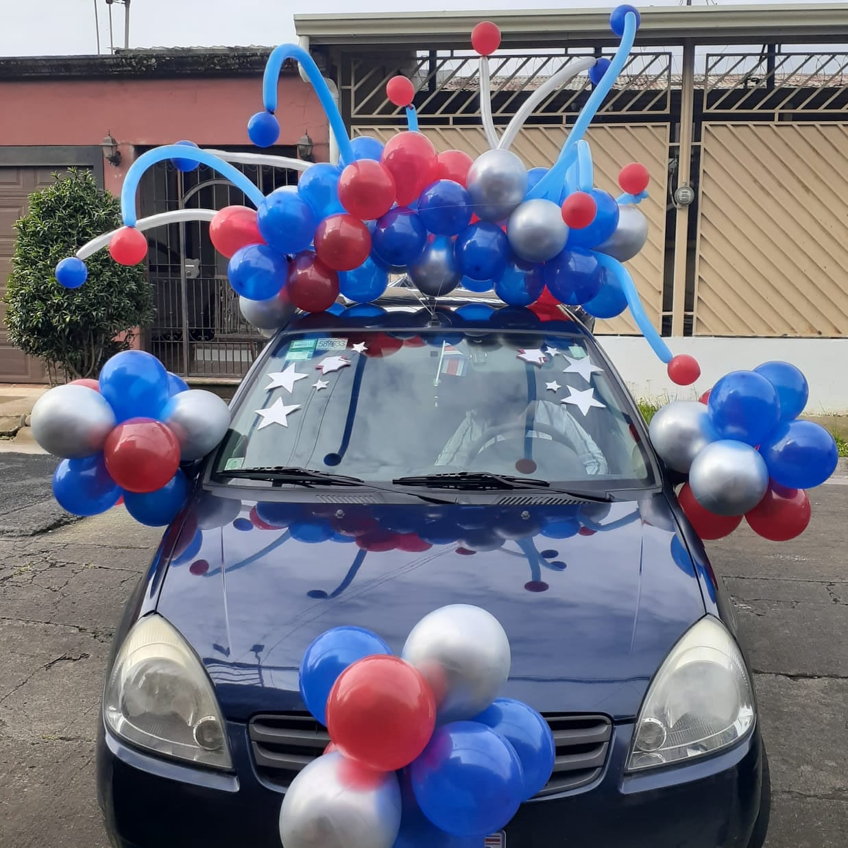 “Hace tres semanas una amiga me llamó para pedirme que le decorara el carro y lo hice, desde ahí he estado recibiendo pedidos. Hago una guirnalda principal para el techo del carro y otros arreglos para los lados, los clientes escogen los colores y si quieren algo extra, porque también ofrezco bombas de las largas y adornos en fon, tengo un paquete básico en 12.500 colones, pero claro que el cliente es el que manda.