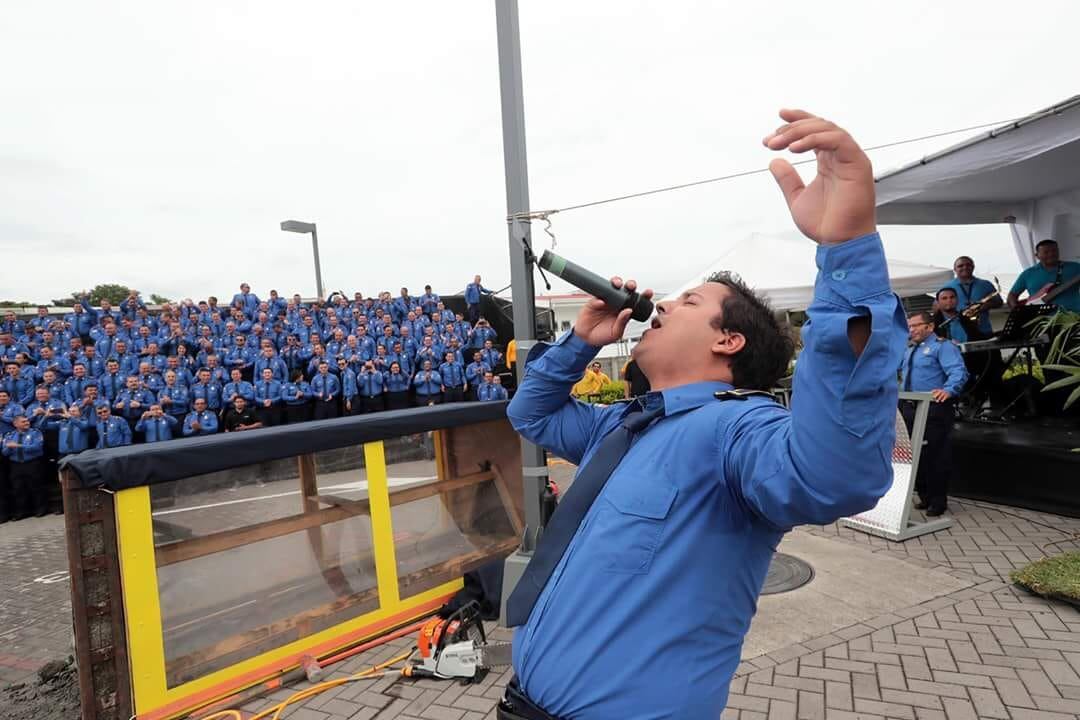 Él también es cantante y fue quien se encargó de ponerle sabor al cumpleaños número 153 del Cuerpo de Bomberos, que se festejó el pasado 28 de julio en el edificio de operaciones de esta institución en Santo Domingo de Heredia, al evento asistieron unas 500 personas.