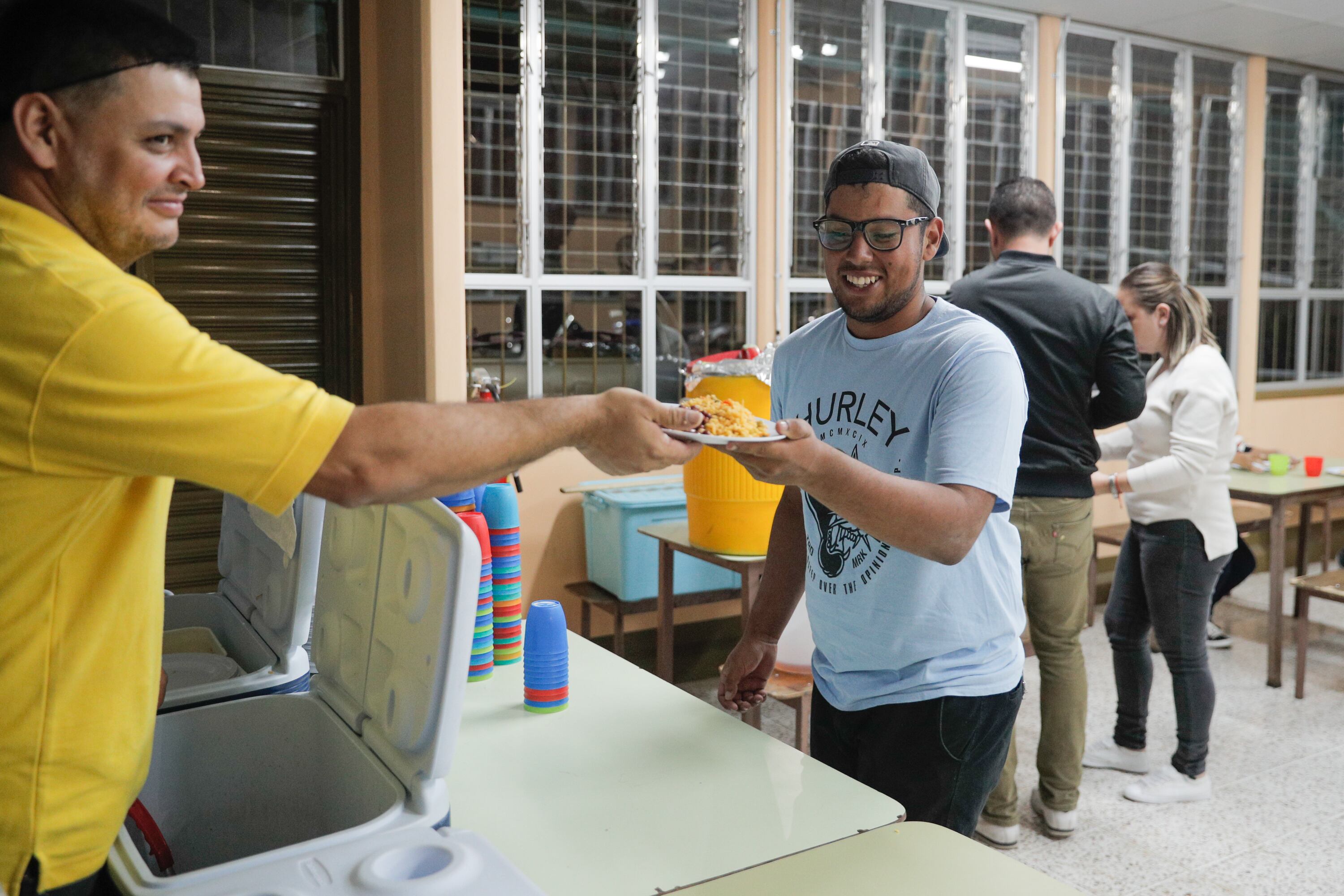 Vinicio Chaves, de 19 años, se siente motivado al saber que un plato de comida lo espera en el colegio. Actualmente trabaja como operario en una empresa constructora en Purral y luego del colegio se traslada a su casa en Tres Ríos.