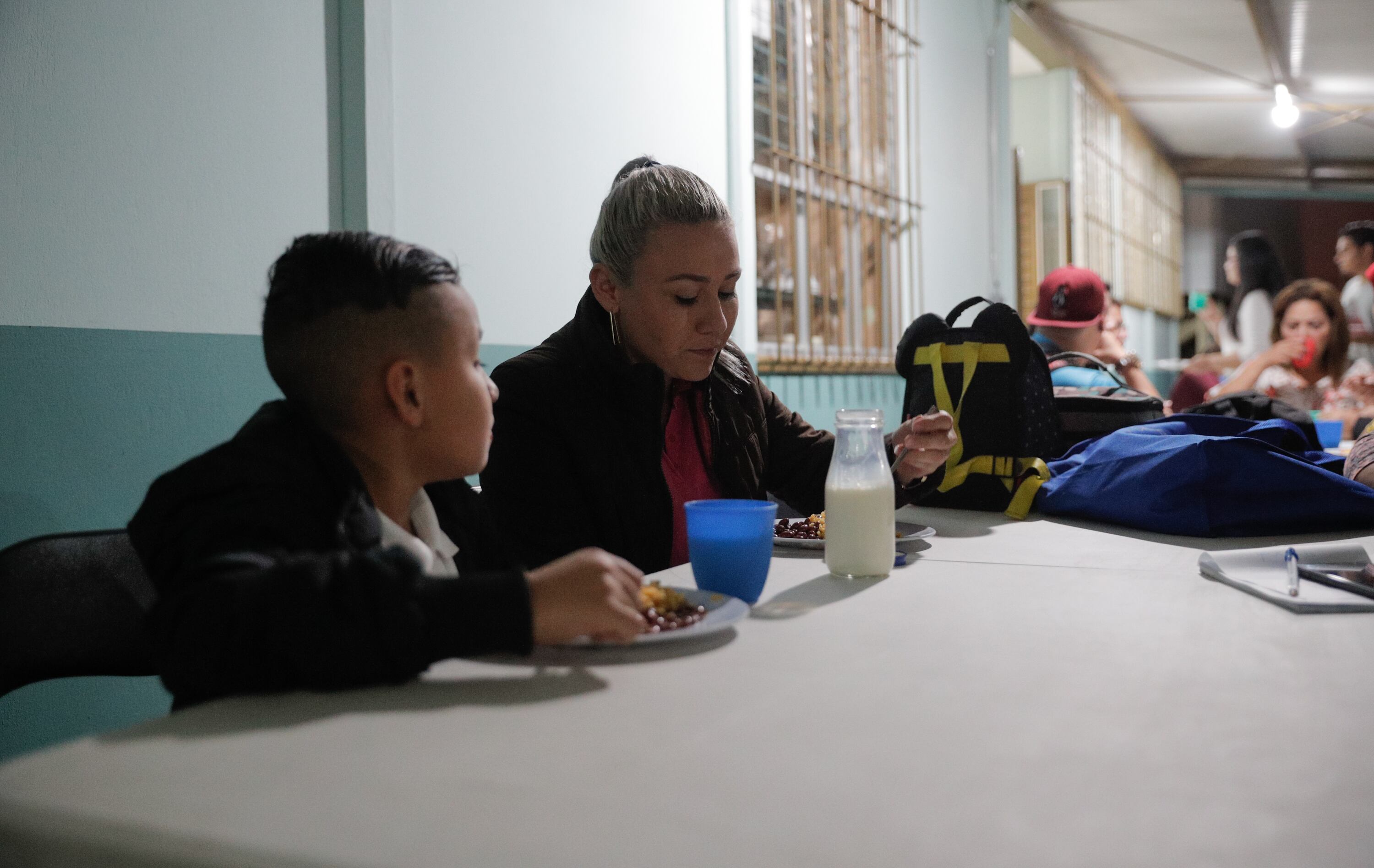 Es jueves por la noche y Keylin Jiménez, de 27 años, y su hijo Dereck Cordero, salen un momento de clases para ir a cenar.