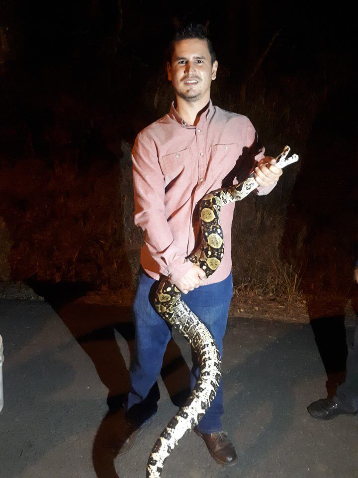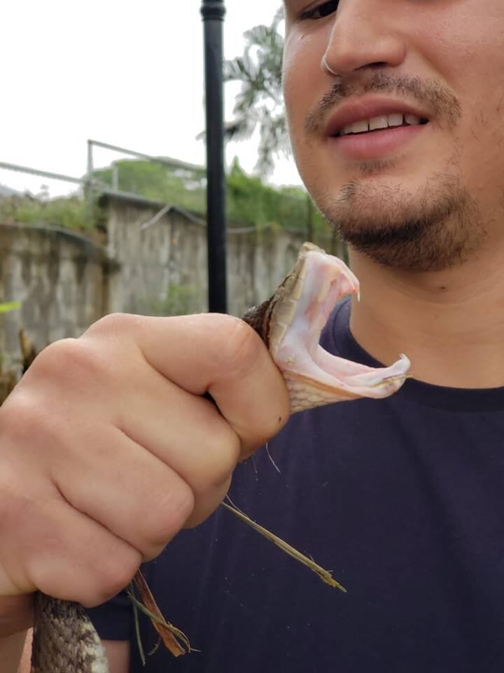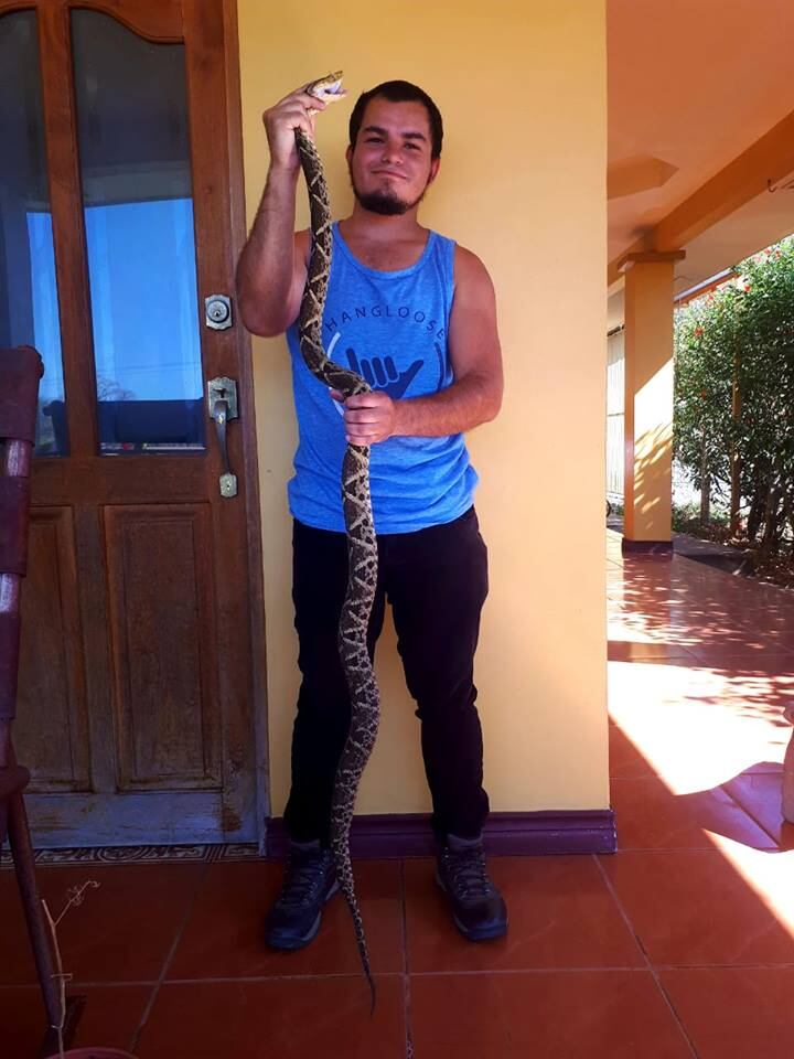 Este estudiante de Manejo Forestal es un gatazo atrapando sincejas, tanto venenosas como no, pues se ha dado taco a taco con terciopelos, corales, boas, cascabel, entre otras.