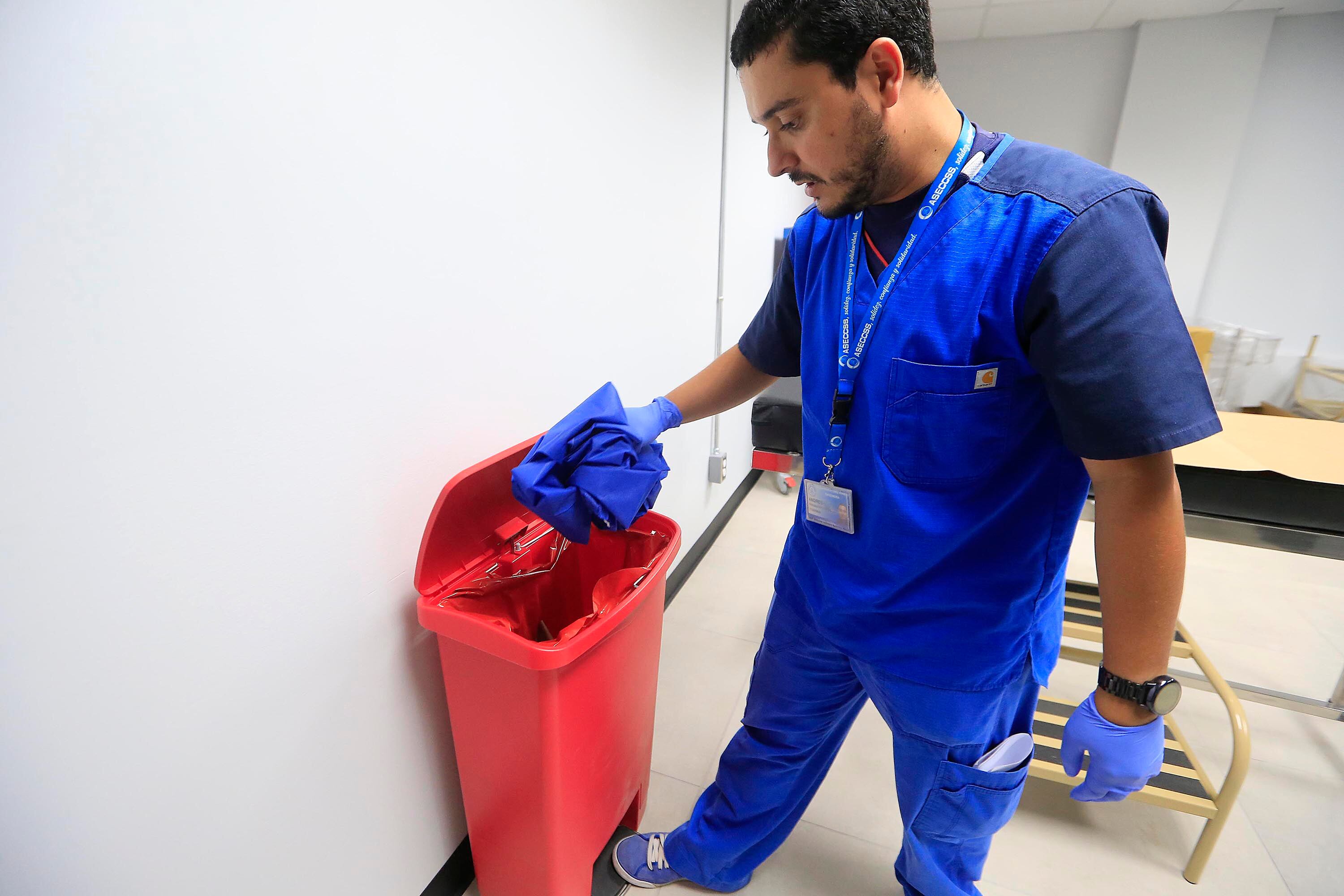 Una vez realizada la prueba, el médico se deshace del equipo especial en el basurero de material peligroso, para evitar que las partículas contaminadas lleguen a una persona sana y la enferme.