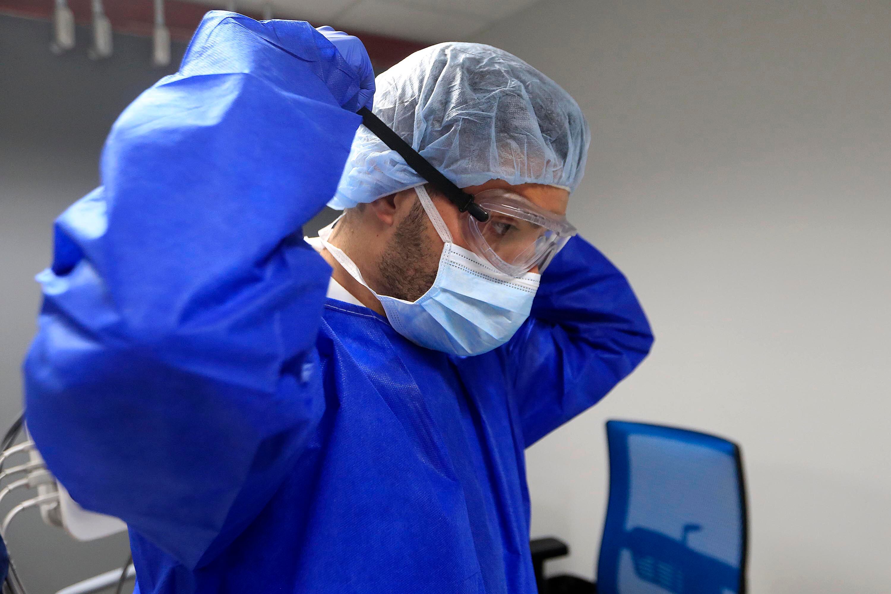 Para poder hacer la prueba que se mandará al laboratorio del hospital Calderón Guardia, al que está adscrito el Ebáis de Lourdes, el médico debe ponerse un traje especial que consta de lentes, gorrito, una mascarilla N-95 que es la más segura, bata de nivel 2 y guantes estériles.