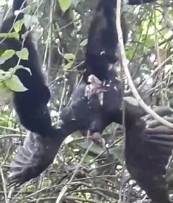 La imagen que tenía al frente era absolutamente insólita y tenía igual de sorprendidas a dos mujeres jóvenes que iban con él. Dos monos aulladores habían atrapado ramas arriba a un zoncho y lo estaban descuartizando.