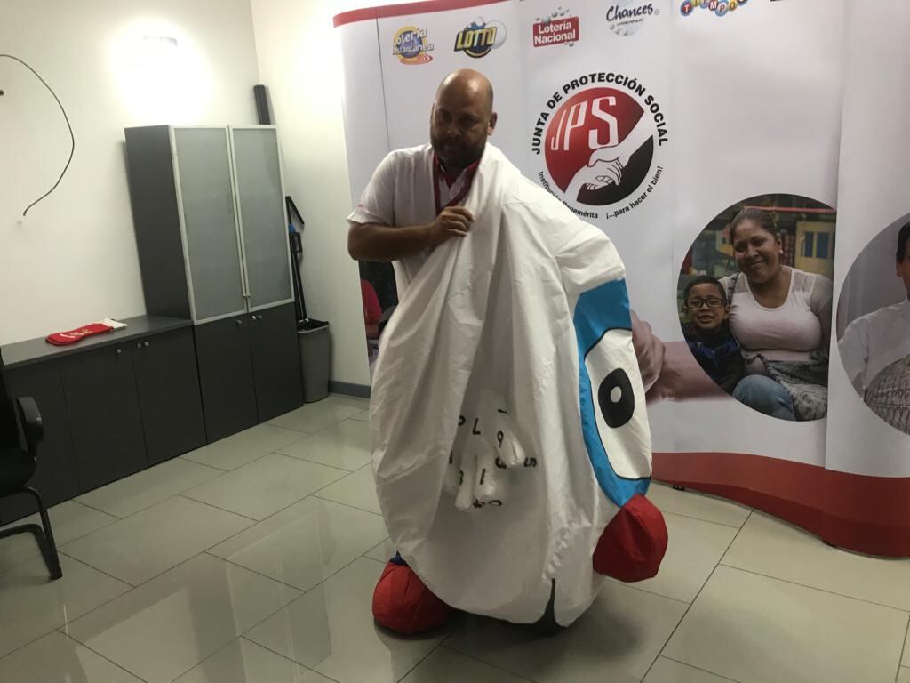 Desde hace dos años. Un día salí con la gente de Mercadeo y no tenían en ese momento quién se pusiera el traje. Me ofrecí y me dijeron que sí, que lo usara y desde esa vez empecé a a andar con ellos en las giras y eventos.