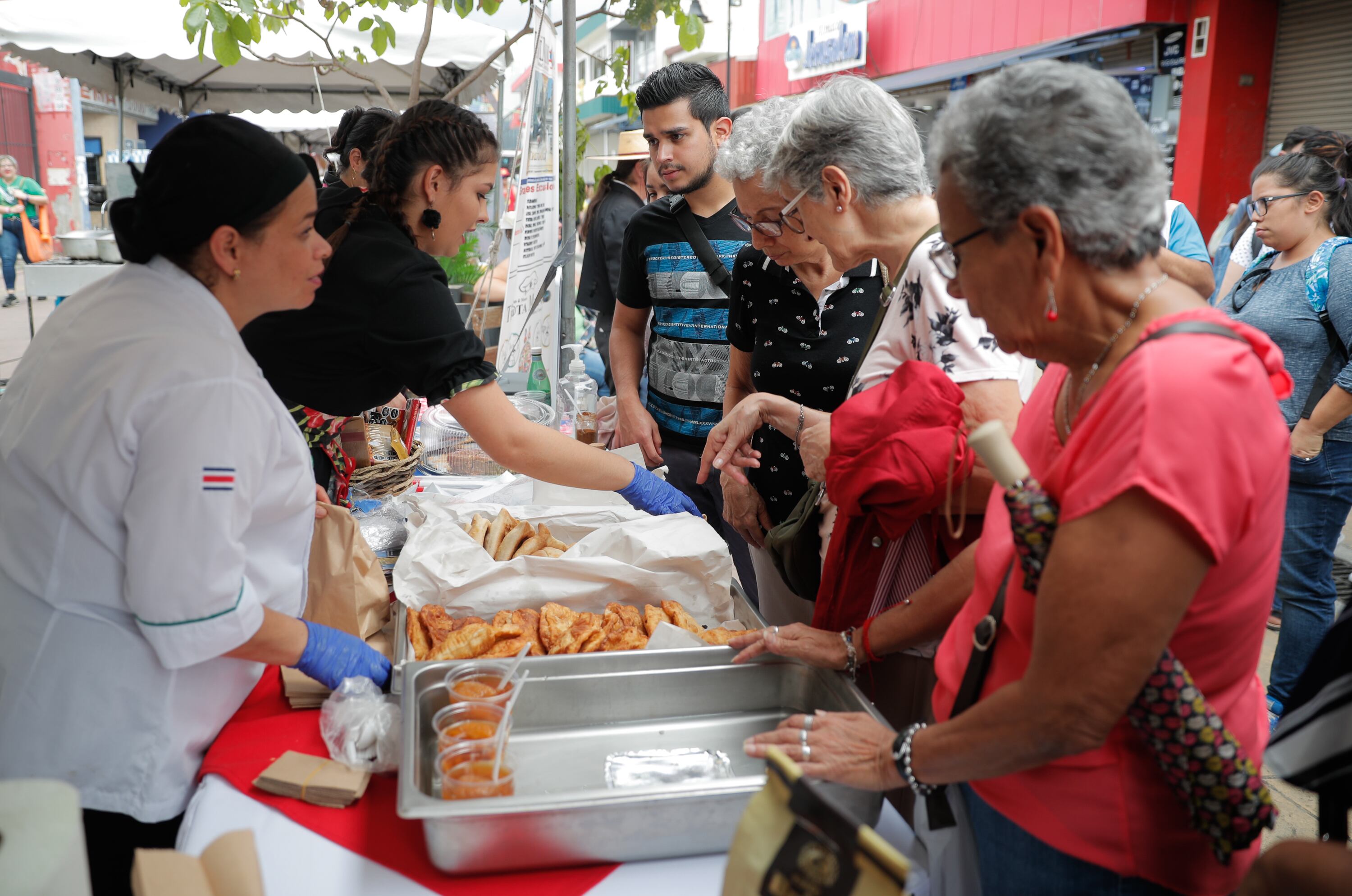 “Las Paveñas”, dos mujeres que venden sus empanaditas de casa en casa en Pavas, también tuvieron la oportunidad de darse a conocer con su famosa papachori, una combinación de papa con chorizo.
