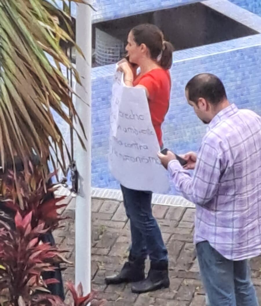 La funcionaria de Recursos Humanos se manifestó este miércoles ante la presidencia del AyA solicitándole un ambiente libre de violencia y un alto al “matonismo” sindical, porque asegura que en la institución el que no esté afiliado al sindicato, no tiene cómo defenderse.