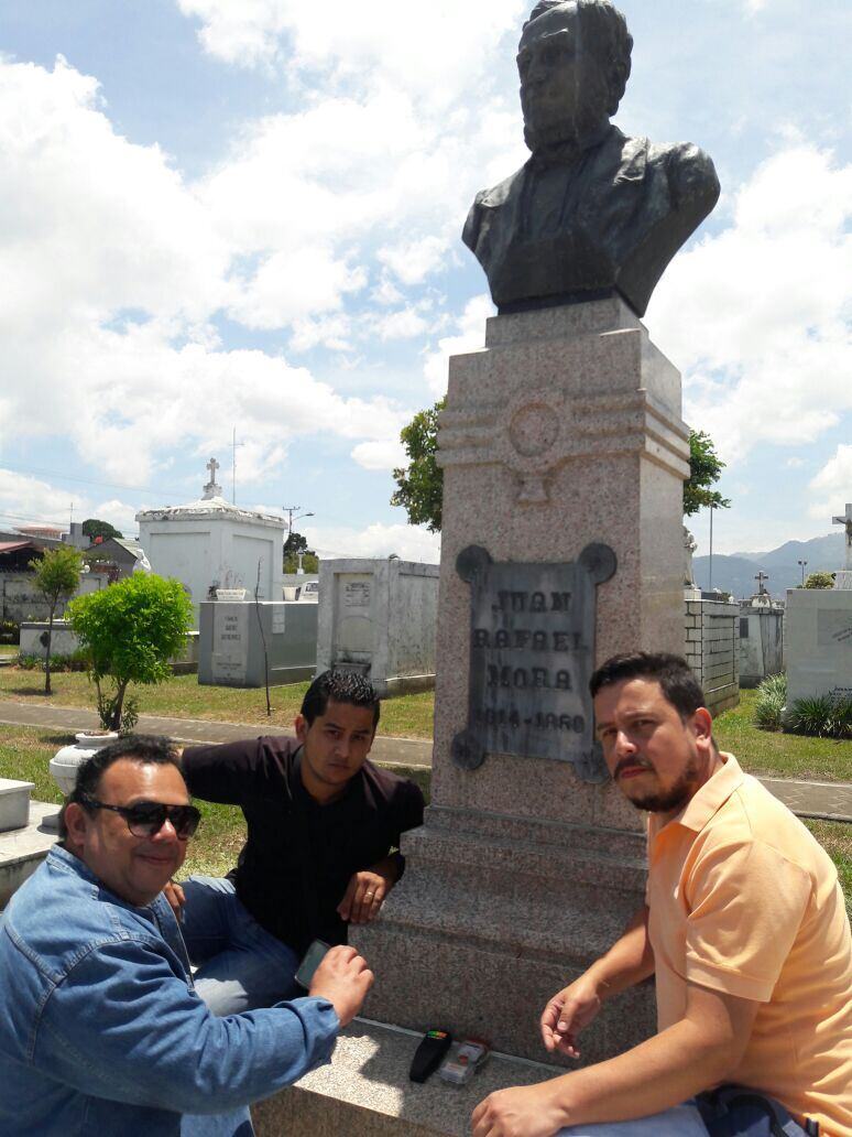 "¿Estamos aquí presentes en la tumba de Juan Rafael Mora Porras cuatro personas?", preguntó Geovanny para ver si la presencia nos estaba agarrando de majes, pero otra vez respondió firme y fuerte con un rotundo sí. Algo que nos alegró porque éramos cuatro, la pregunta fue una trampa y con la respuesta quedamos claros que sí estaba don Juanito con nosotros y nos tenía bien vigiladitos.