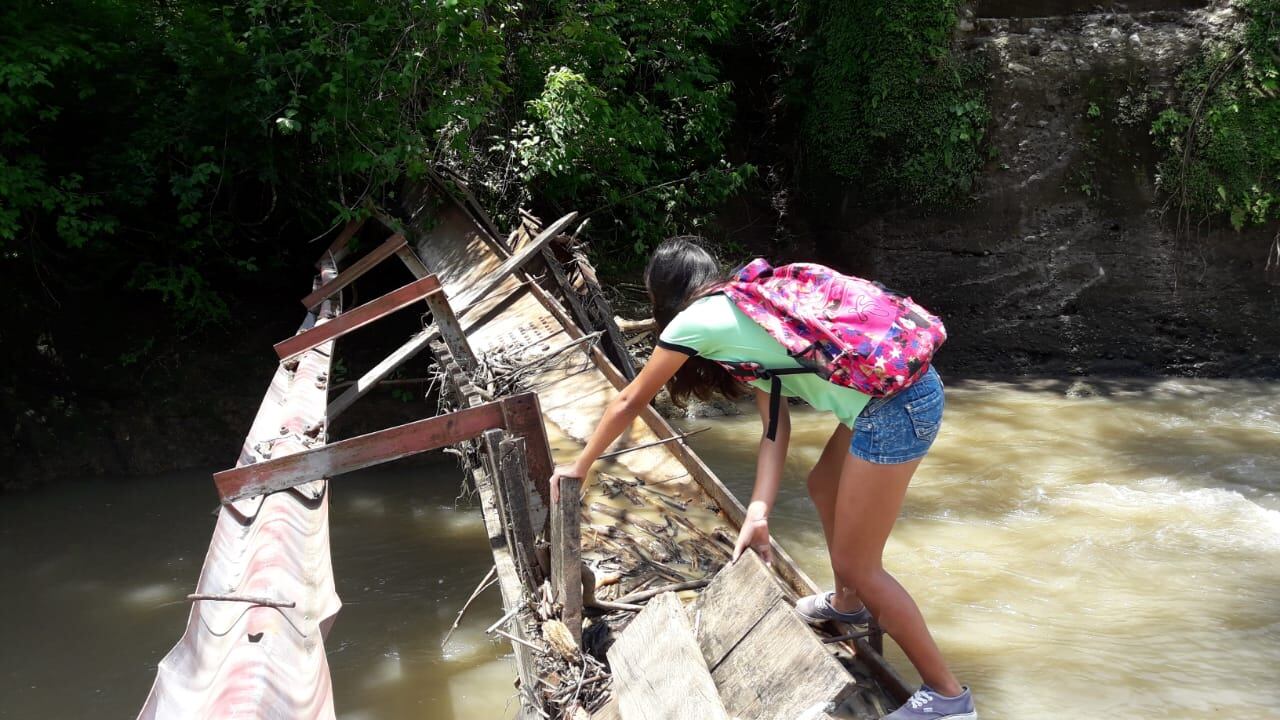 Lo que queda del puente también se ha corrido por la crecida del río y a lo mejor con un buen aguacero se termine de desplomar y ahí sí es cierto que no tendrán modo de asistir a clases, según contaron los afectados.