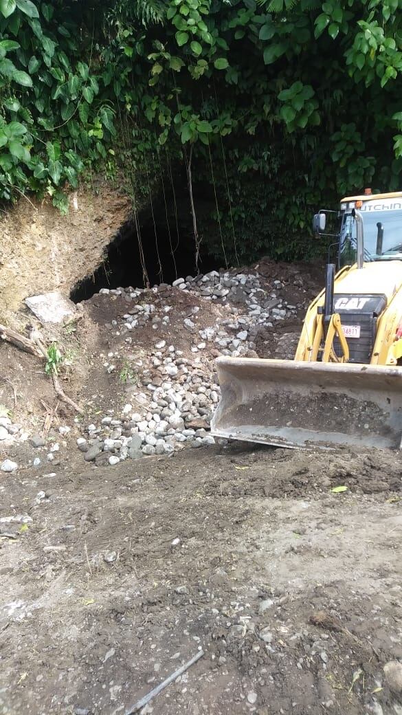 “Esa señora botó las estructuras, el servicio sanitario, todo lo que estaba listo para operar lo destruyó, y no solo eso, recortó la entrada de la cueva y ahora luce peligroso, la falseó al remover tierra y cortó árboles. La cueva es un organismo vivo, hizo un daño ambiental. Fue Yelgi, la exalcandesa de Siquirres”, comentó molesto don Emos.