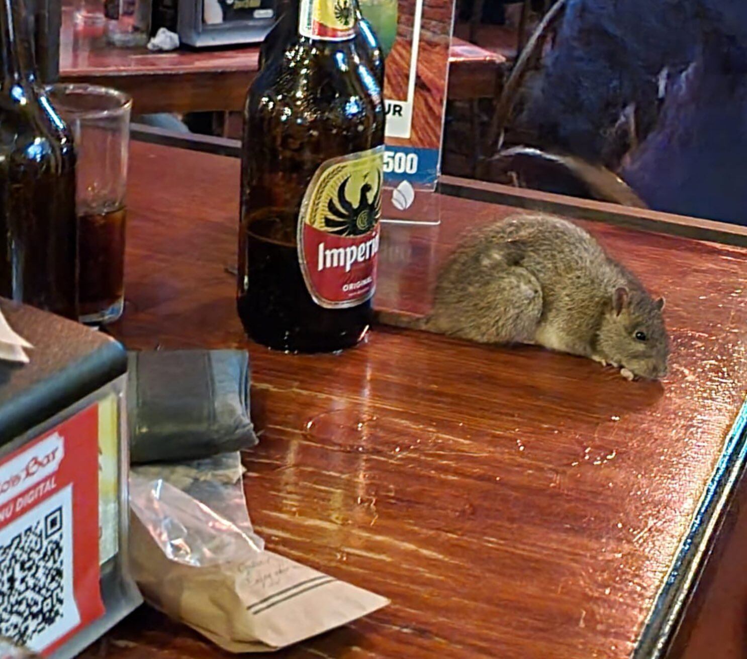Fito’s bar, ubicado en el centro de San Pedro de Montes de Oca, publicó un comunicado en el que lamenta que una rata haya caído del techo a una mesa del comercio.