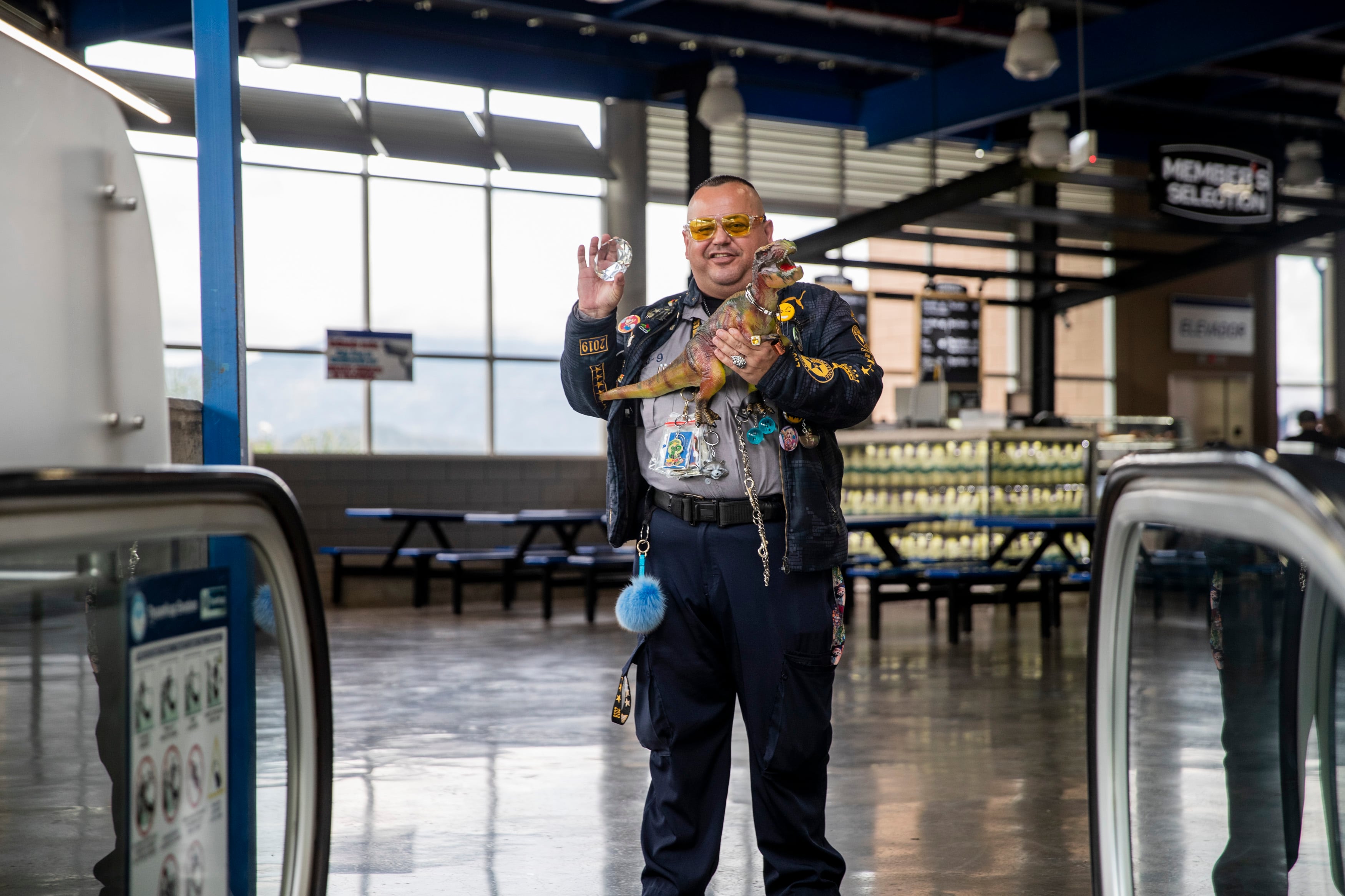 Y por ratos, también luce la chaqueta que demuestra porqué es conocido como “la leyenda” en alusión a que es el Michael Jordan de los guardas, al poseer los mejores números en la historia de los oficiales de seguridad.