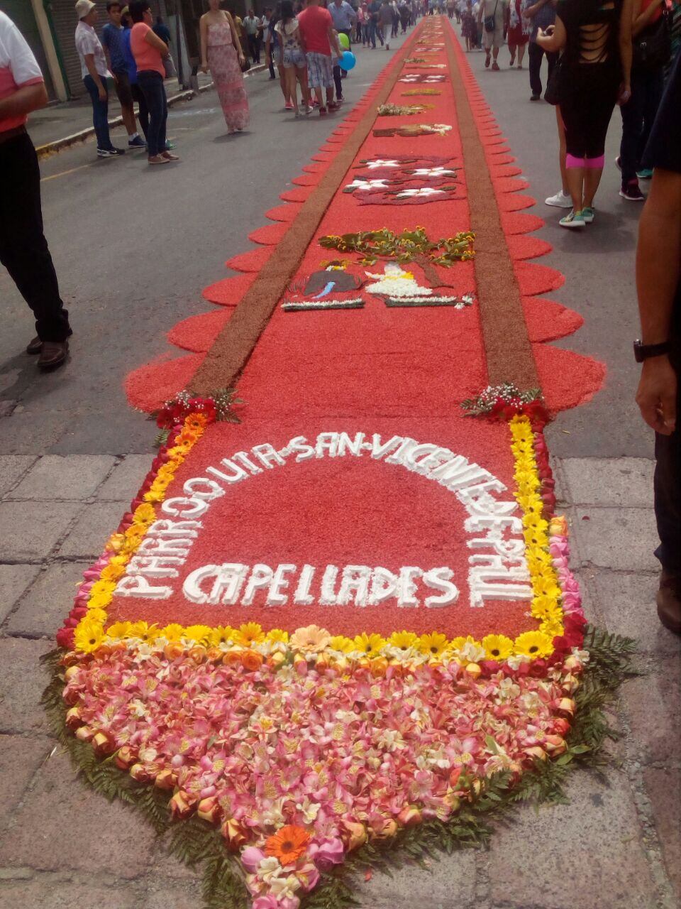 "Siempre hemos trabajado con tranquilidad, lo único es que debemos cuidar que los perritos que pasan no vayan a dañar algún arreglo porque se ponen aveces a jugar o pasar por encima de las alfombras, para que no deterioren los trabajos. El material es totalmente donado por productores de Llano Grande, Cerro de La Muerte, empresarios de Cartago y otras personas, ya que no contamos con presupuesto para esto y acudimos a la buena voluntad de muchas personas que siempre nos tiende la mano. Entre todos hacemos los diseños y empezamos en conjunto a exponer ideas, con mes y medio de anticipación" comentó Wilberth Figueroa, jefe de la estación de Cartago.