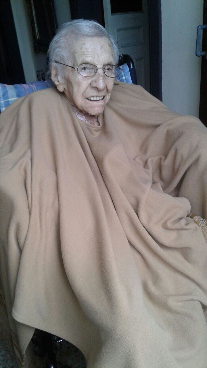 Doña Hilda Carranza viuda de Coto es una simpática abuelita de 104 años que vive en el puro centro de Cartago y por eso cada año para la festividad de La Pasada de La Virgen, tiene palco preferencial para no perderse ningún detalle.