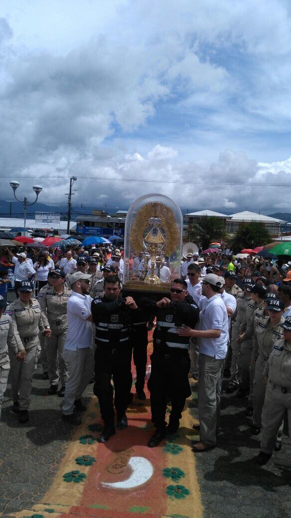 La imagen de la Negrita empezó el recorrido rumbo a su casa en la basílica de los Ángeles, tradición conocida como La Pasada, este domingo, desde las 11 de la mañana, luego de una misa de dos horas.