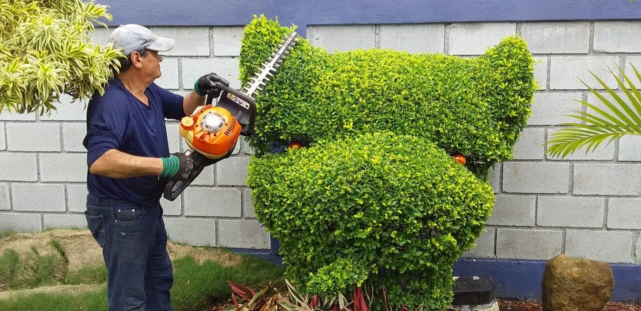 El arte de hacer figuras en las áreas verdes es conocido como paisajismo urbano y, según nos contó don Manuel, poco a poco él ha ido viendo nacer sus creaciones y al día de hoy cuenta con cerca de 45 a 50 figuras de animalitos y objetos distribuidas en pequeños rincones del área comercial.