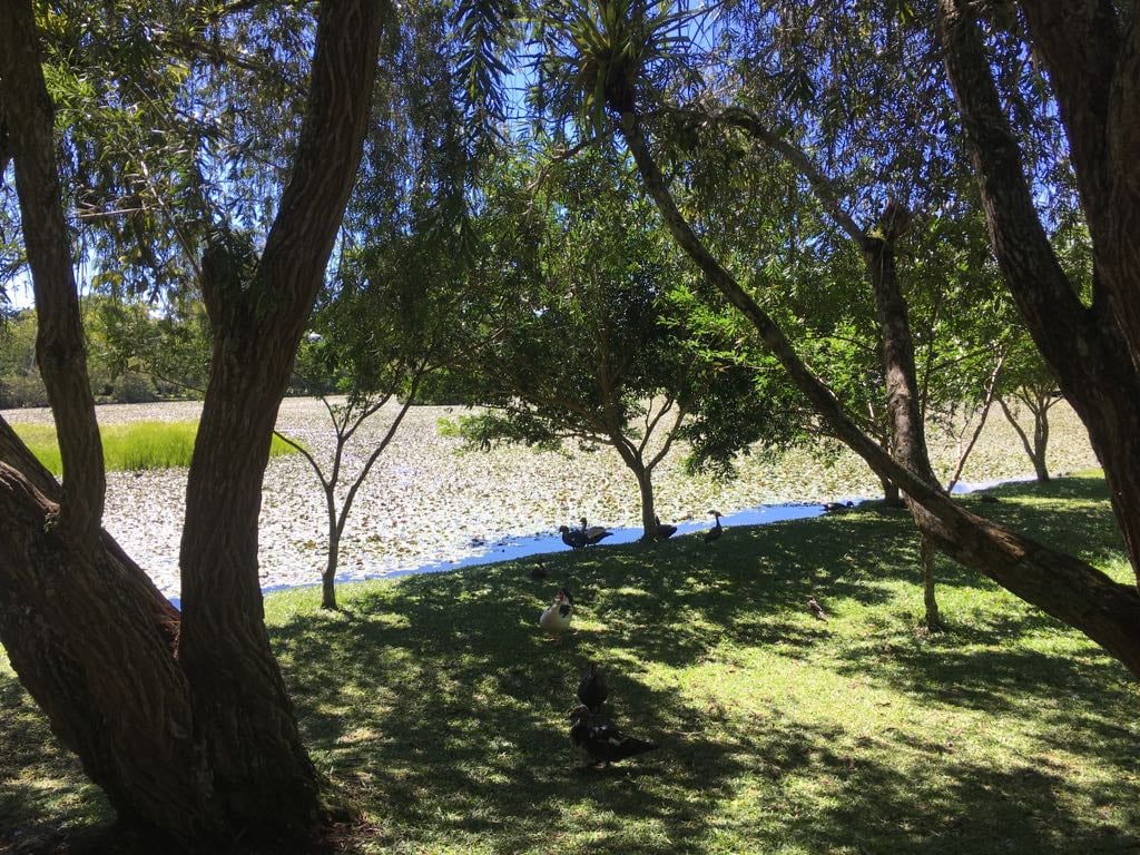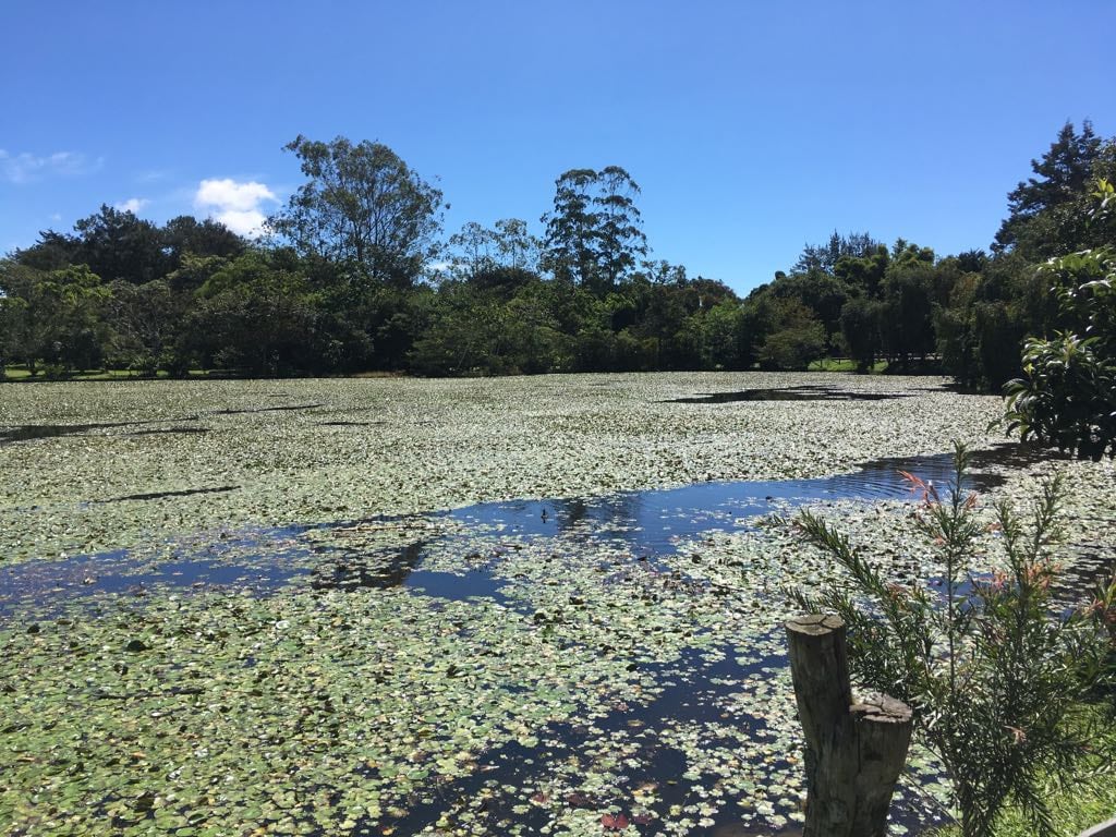 Esto porque casi toda la laguna está cubierta por lirios que no dejan ver el agua y los animalitos deben sortear las plantas si quieren tirarse a nadar un ratito.
