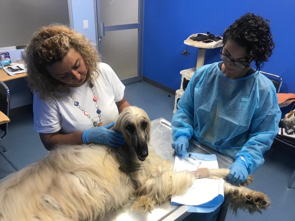 Farsham es un perro raza afgano, de ocho años, que sufre cáncer de tiroides y La Teja tuvo la posibilidad de estar en una de sus sesiones de quimioterapia. Sí, las mascotas que sufren esta terrible enfermedad también pueden acceder a este tratamiento.