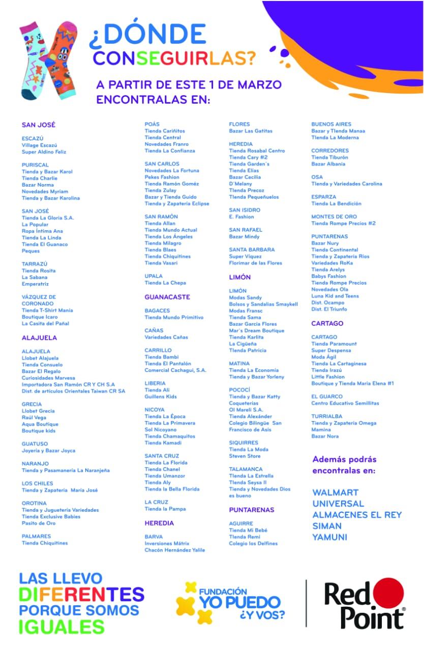 Hay medias de distintos colores para niños a partir de los tres años, hasta para adultos, con 20 diseños hechos por chicos con Down. Hay más de 150 puntos de venta en todo el país y el precio sugerido es de ¢2.100.