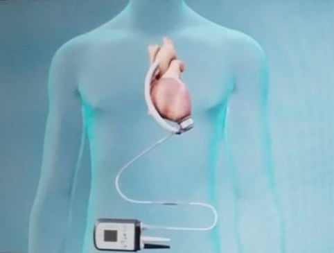 “La prótesis lleva un cable que tiene el paciente por dentro, que se conecta a un controlador en el abdomen. Este indica el nivel de batería del dispositivo y tiene dos cables que salen del cuerpo para conectarle dos baterías que el paciente deberá llevar siempre, a cada uno de los costados de la cintura”, añadió.