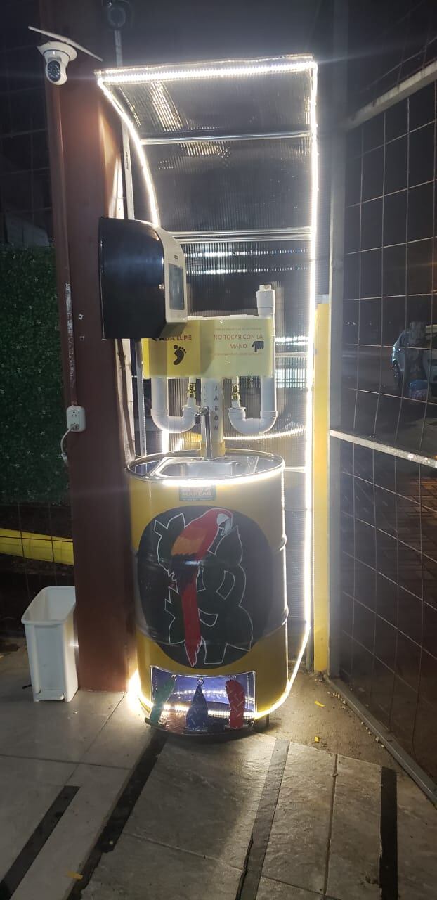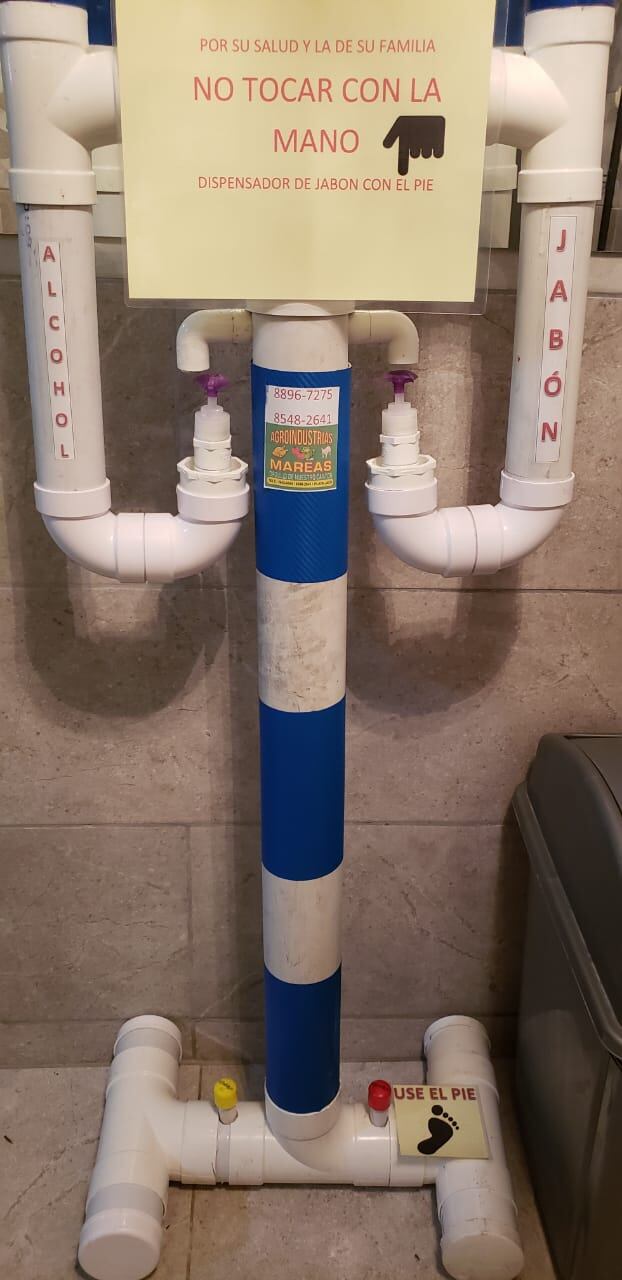 Los dispensadores no usan electricidad, están construidos con pedales (para evitar usar las manos) y algunos de ellos hasta techados para ponerlos al aire libre.